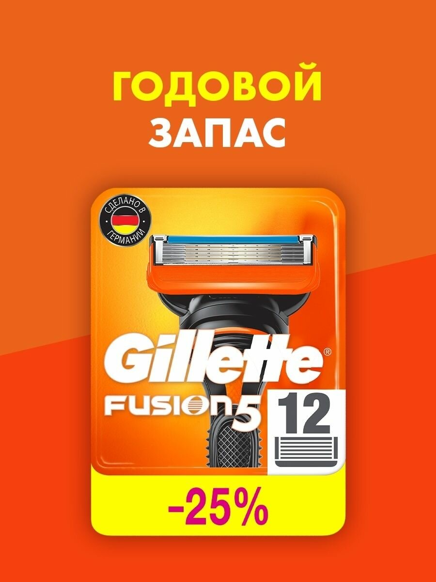 GILLETTE Fusion 5 Сменные кассеты для бритья с 5 лезвиями, мужские, 12 шт