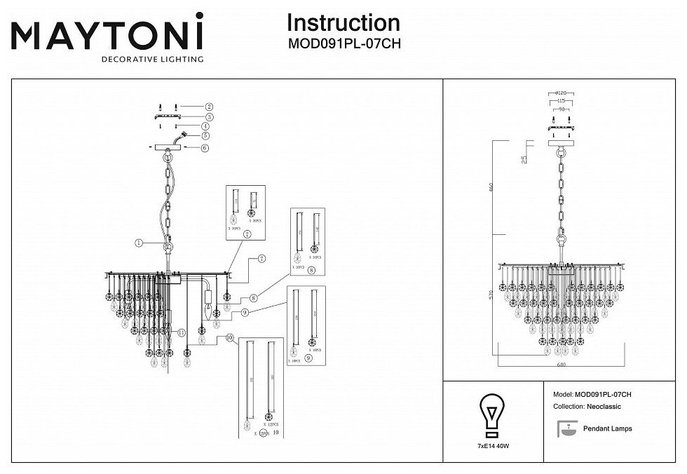 Светильник подвесной Maytoni Linn, MOD091PL-09CH, 360W, E14
