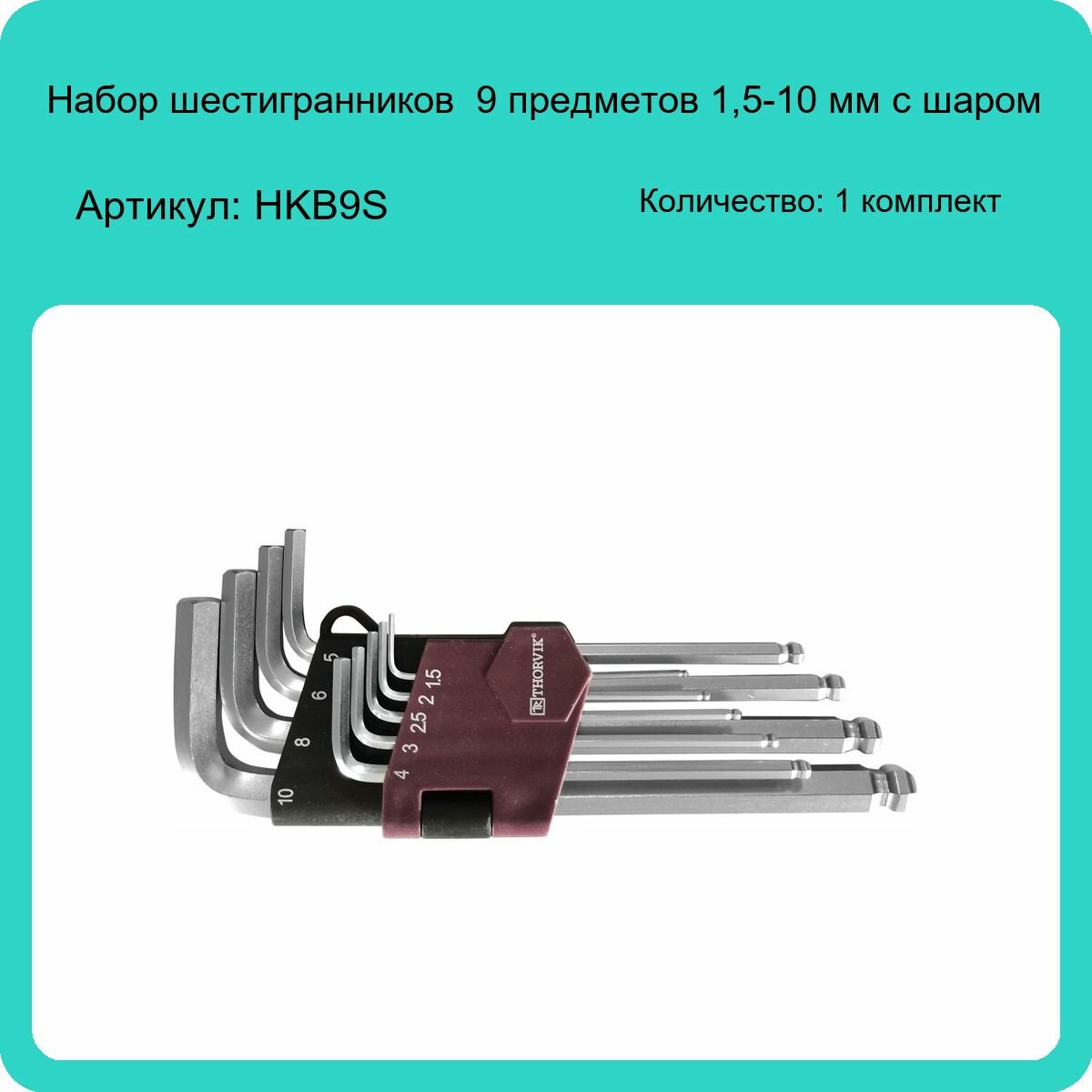 Набор шестигранников 9 пр. 1,5-10 мм с шаром Thorvik HKB9S 1шт