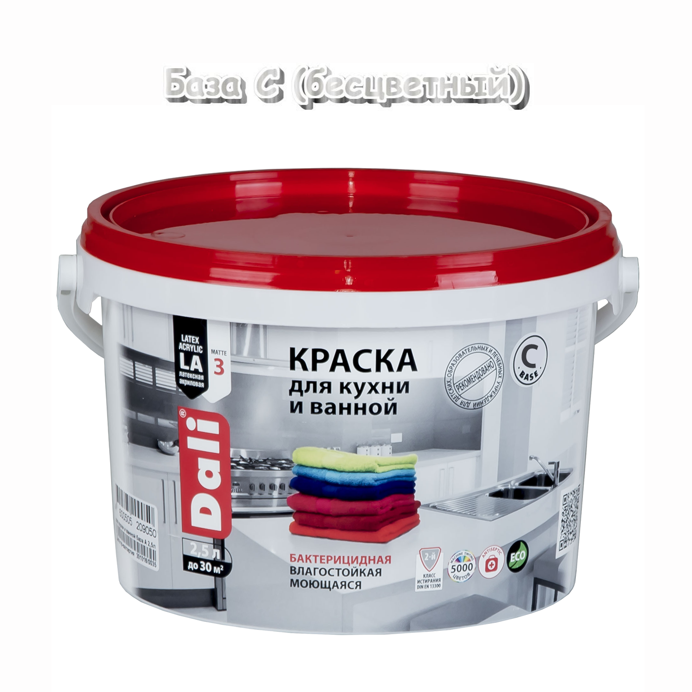 Краска латексная акриловая для кухни и ванной моющаяся база С DALI 2,5л бесцветный