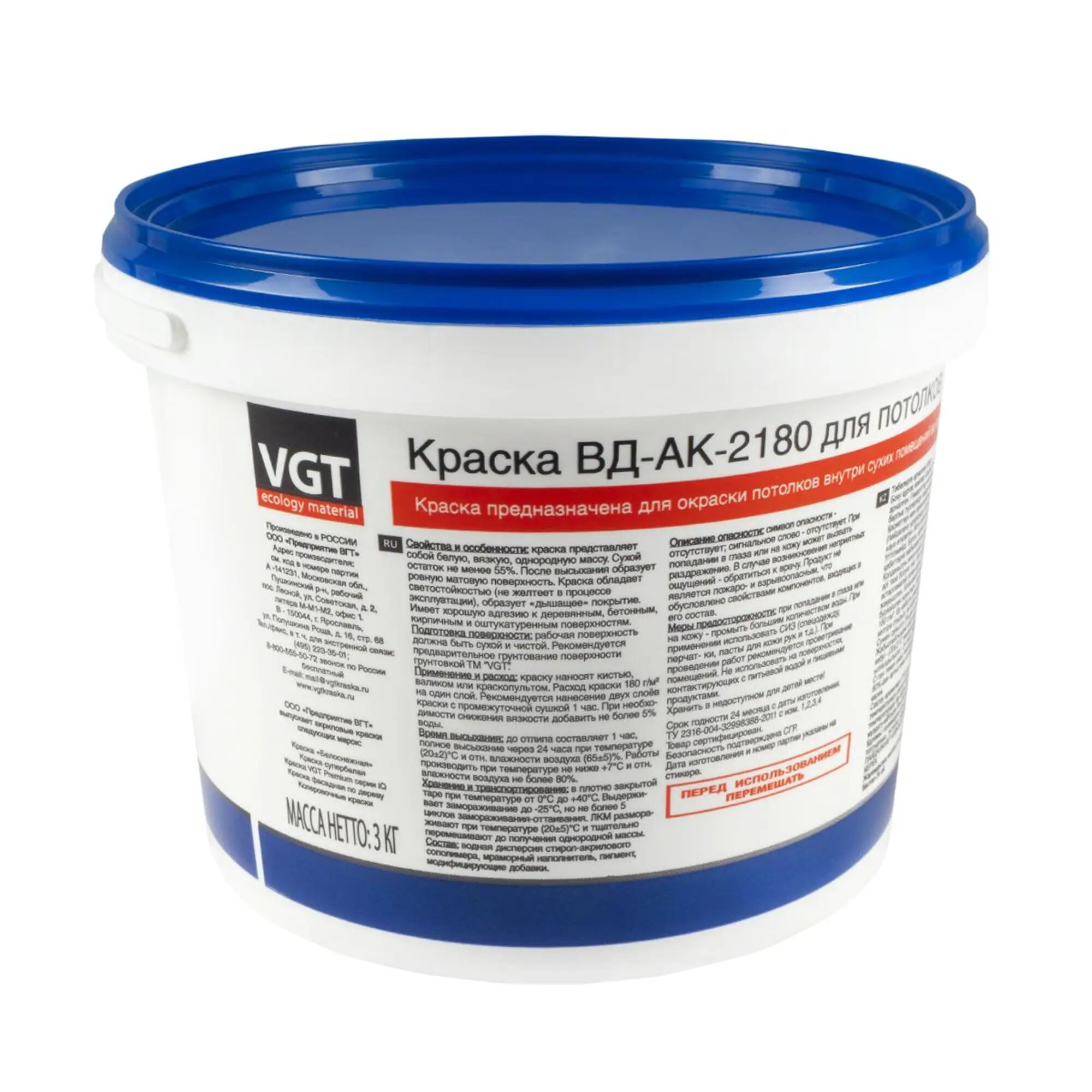 VGT / ВГТ ВД-АК-2180 Краска акриловая для стен белоснежная 3кг