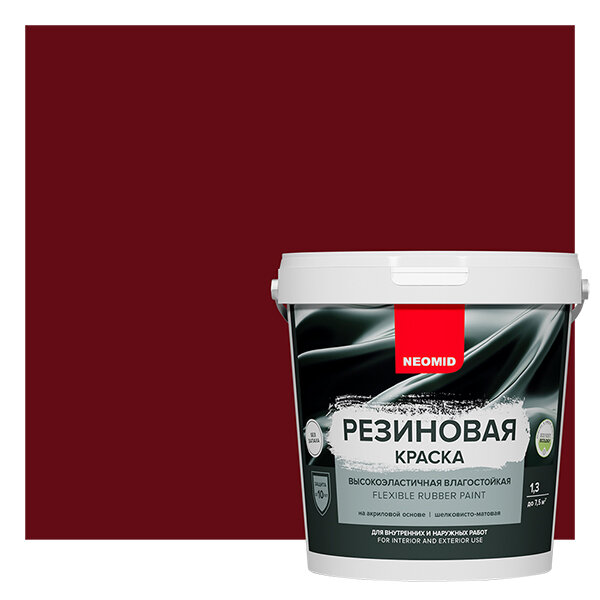 Краска резиновая Neomid шелковисто-матовая, готовые цвета, Вишня 1,3 кг