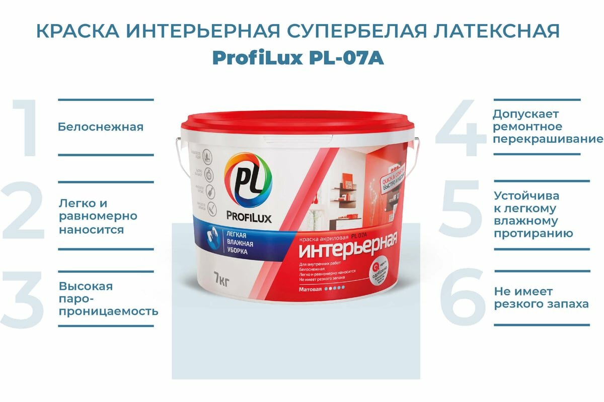 Краска интерьерная влагостойкая Profilux PL- 07А акриловая супербелая 7кг