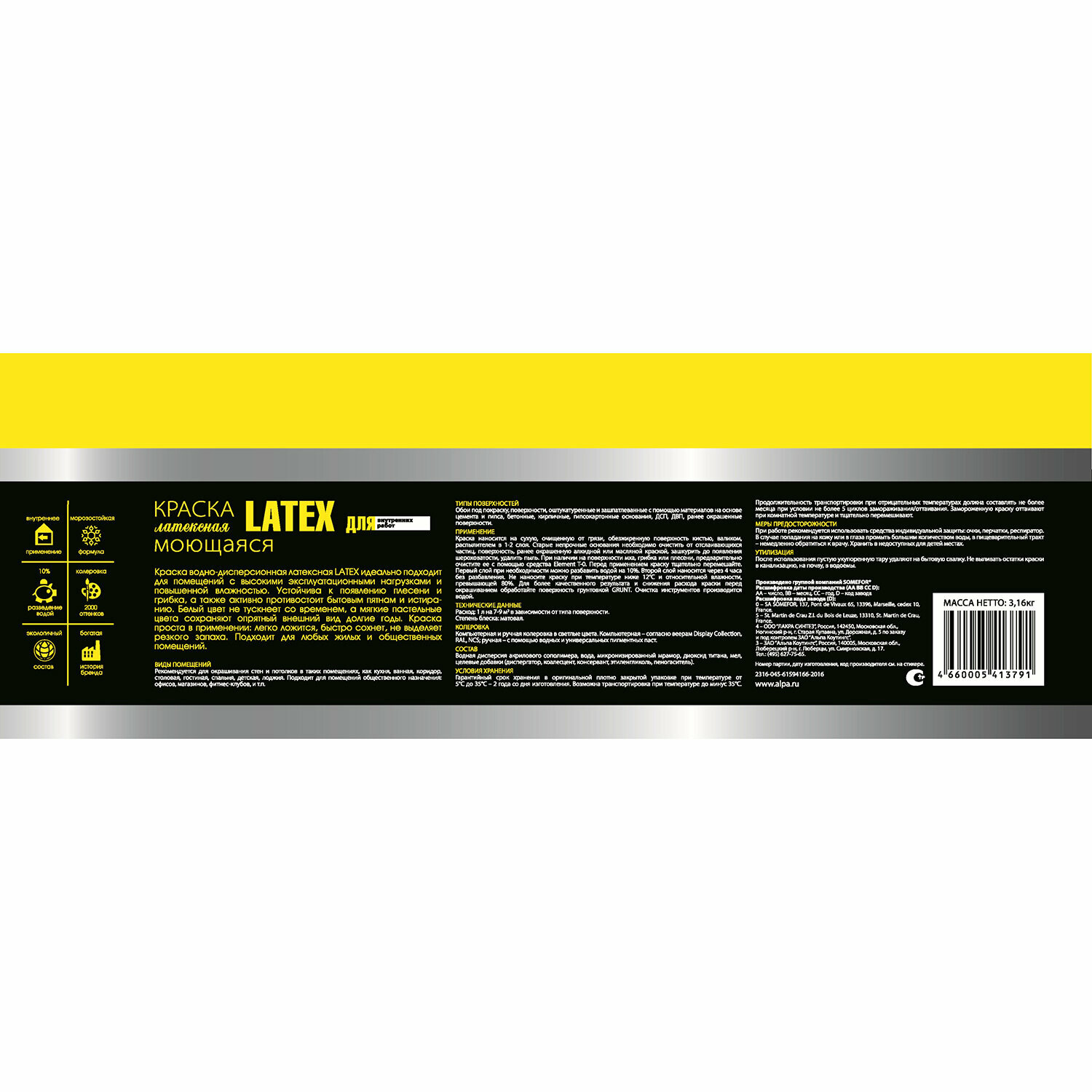 Краска латексная Element SE Latex для стен и потолков моющаяся 4,5 л