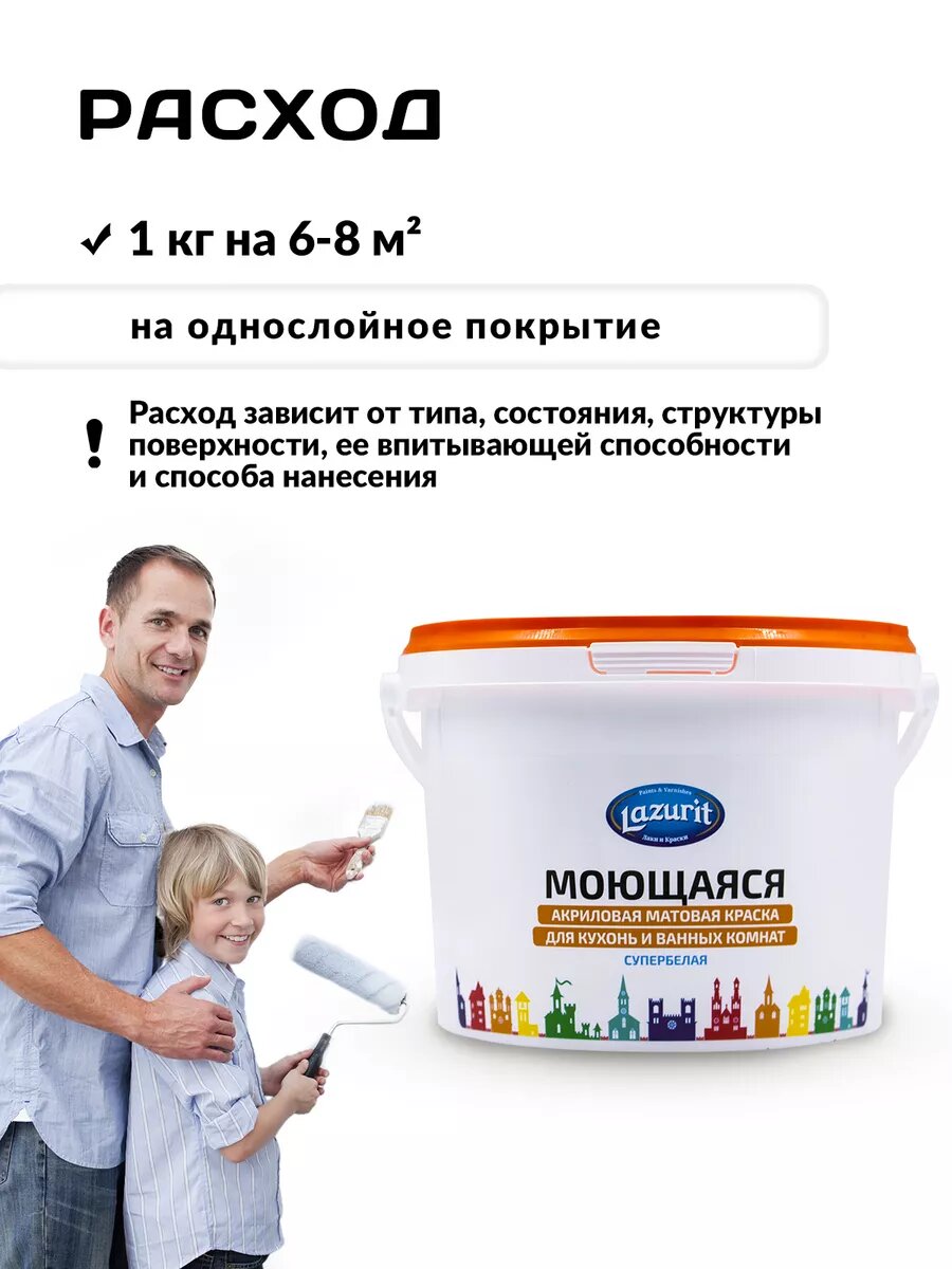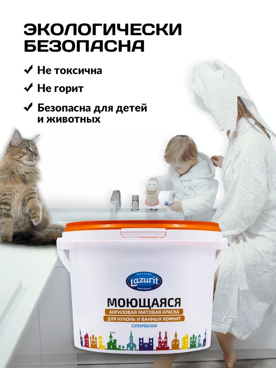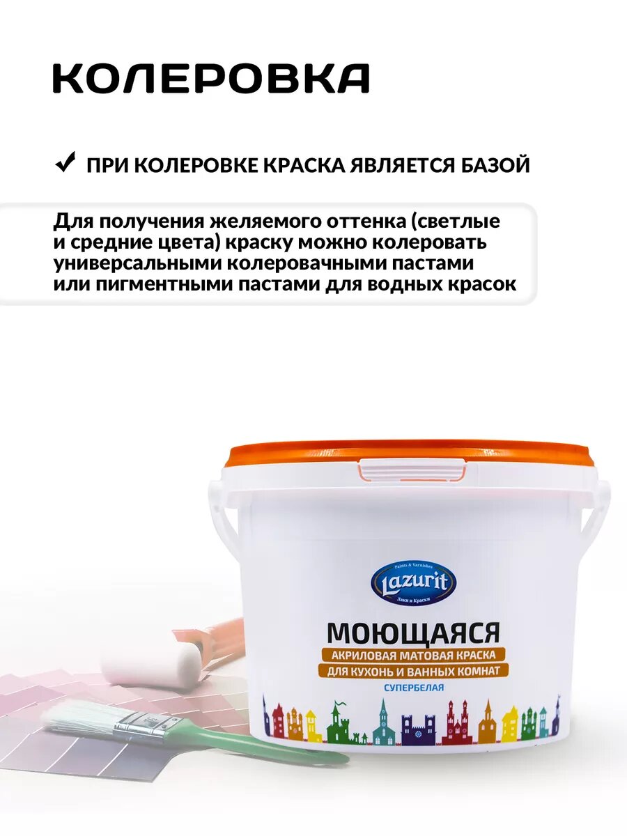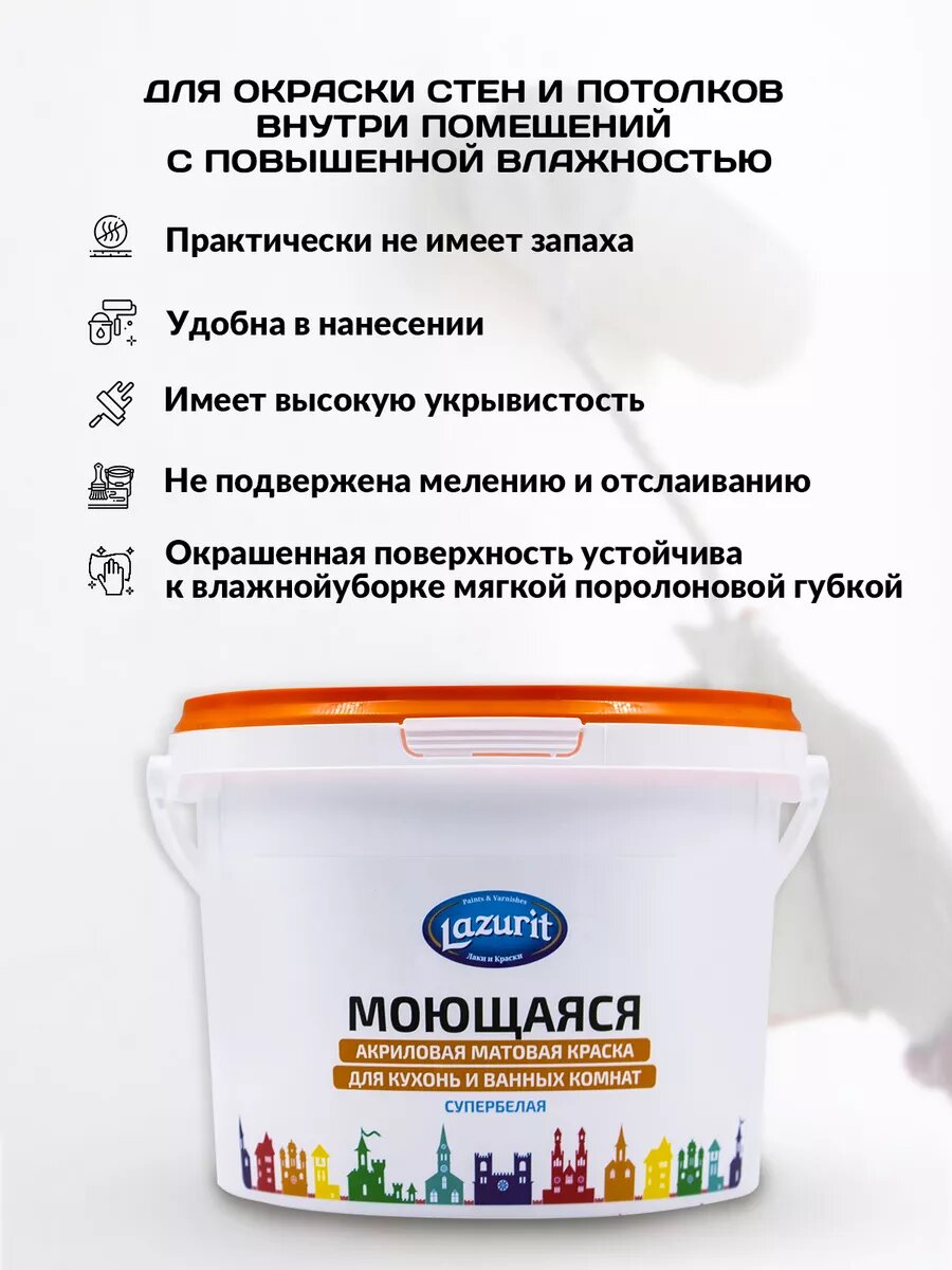СохранитьLAZURIT Моющаяся матовая краска для кухонь и ванн 3 кг интересное: