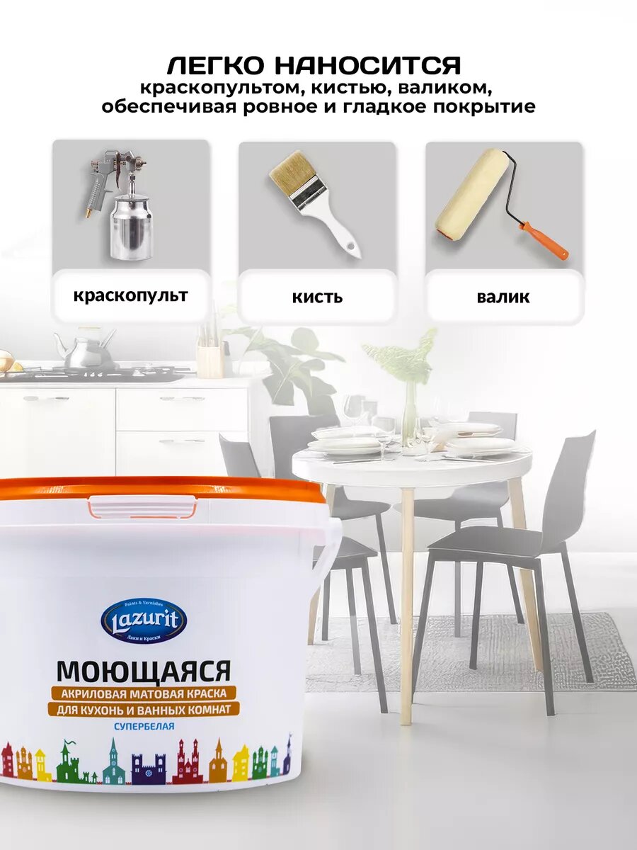 Купить LAZURIT Моющаяся матовая краска для кухонь и ванн 3 кг