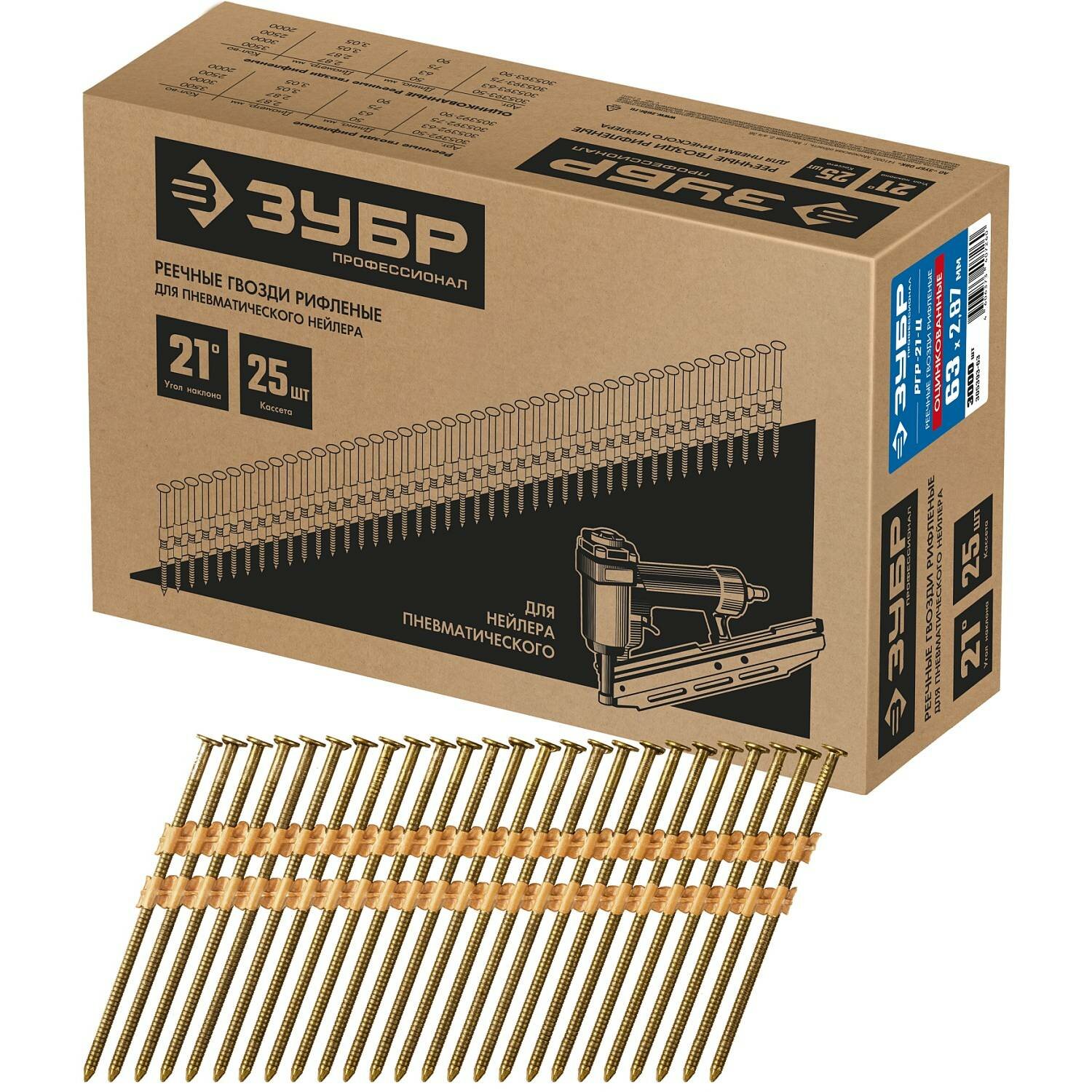 ЗУБР 3000 шт., 63 мм, 21°, оцинкованные, реечные гвозди рифленые РГР-21-Ц 305393-63 Профессионал