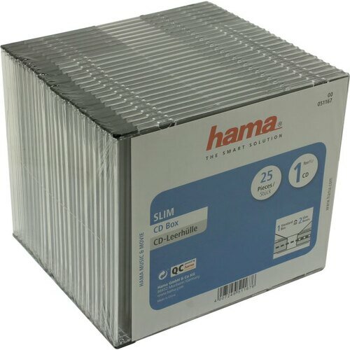 Бокс для CD/DVD дисков Slim Box, 25 шт, Hama, прозрачно-черный, H-51167