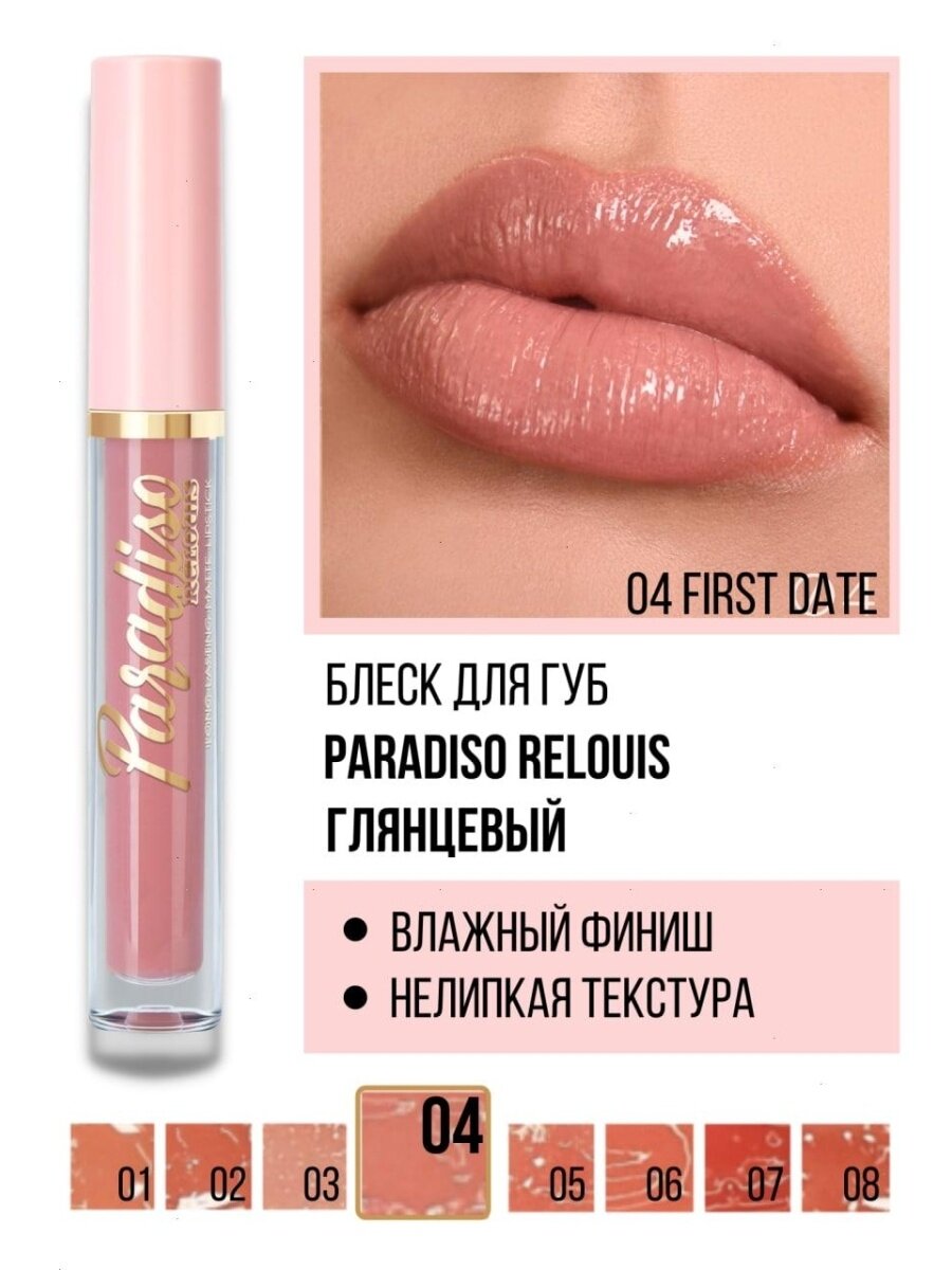 Блеск для губ `RELOUIS` PARADISO тон 04 first date с влажным финишем