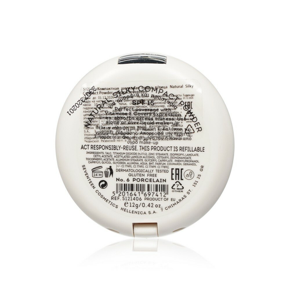 SEVEN7EEN Компактная шелковая пудра для лица NATURAL GLOW SILKY POWDER №06 фарфор интересное: