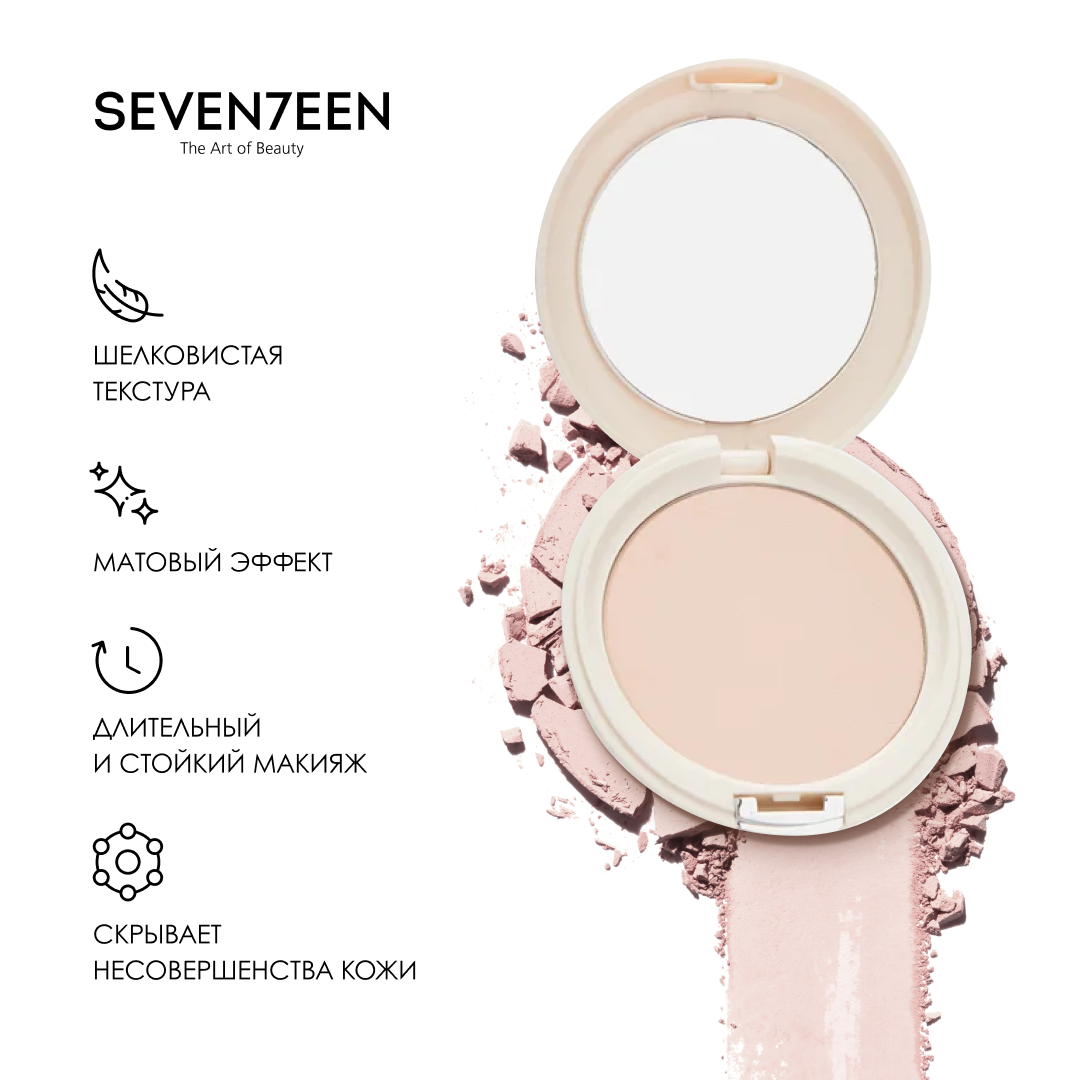 Seventeen / Севентин Пудра для лица матирующая Natural Glow Silky Powder компактная шелковая тон 04 Бежевая роза, SPF 15, 12г / декоративная косметика
