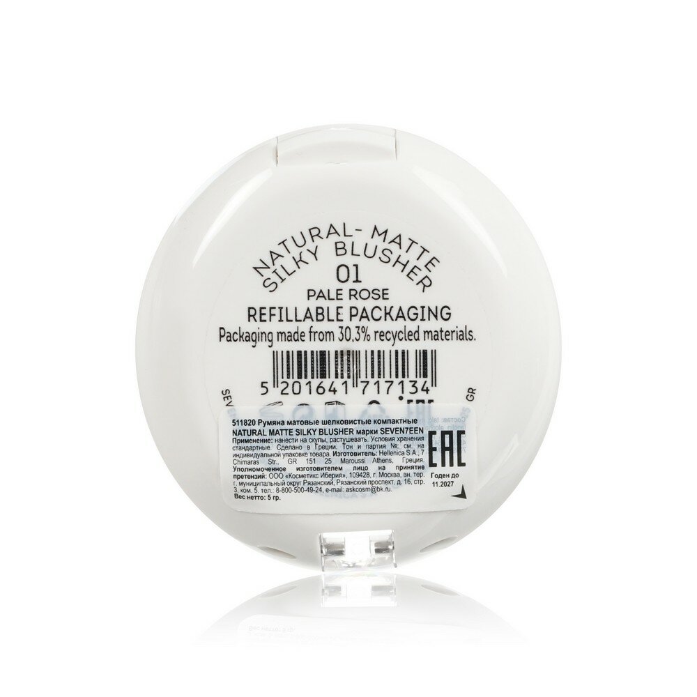 Купить SEVEN7EEN Румяна компактные матовые шелковистые NATURAL MATTE SILKY BLUSHER №01 пыльный розовый