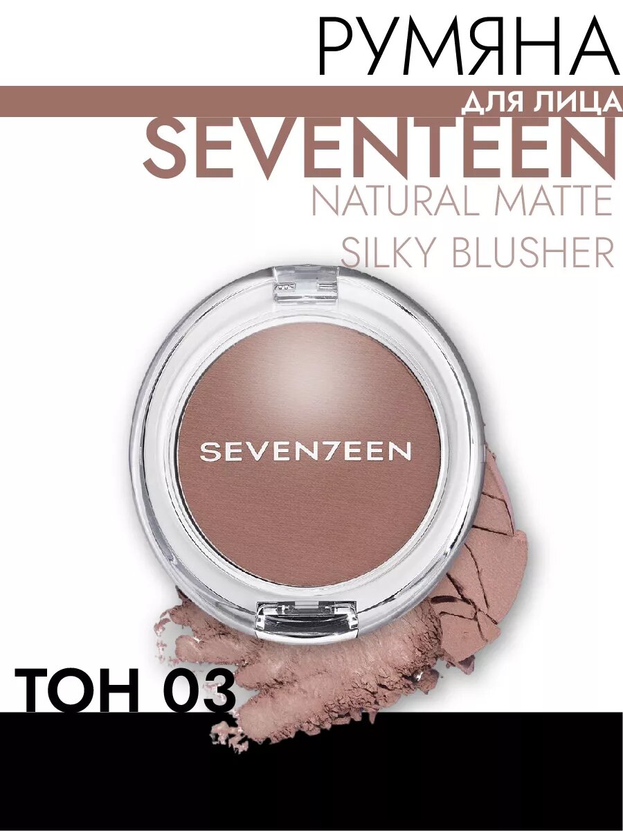 Seventeen / Севентин Румяна для лица сухие Natural Matte Silky Blusher для любого типа кожи 09 Apple cider в футляре 5г / декоративная косметика
