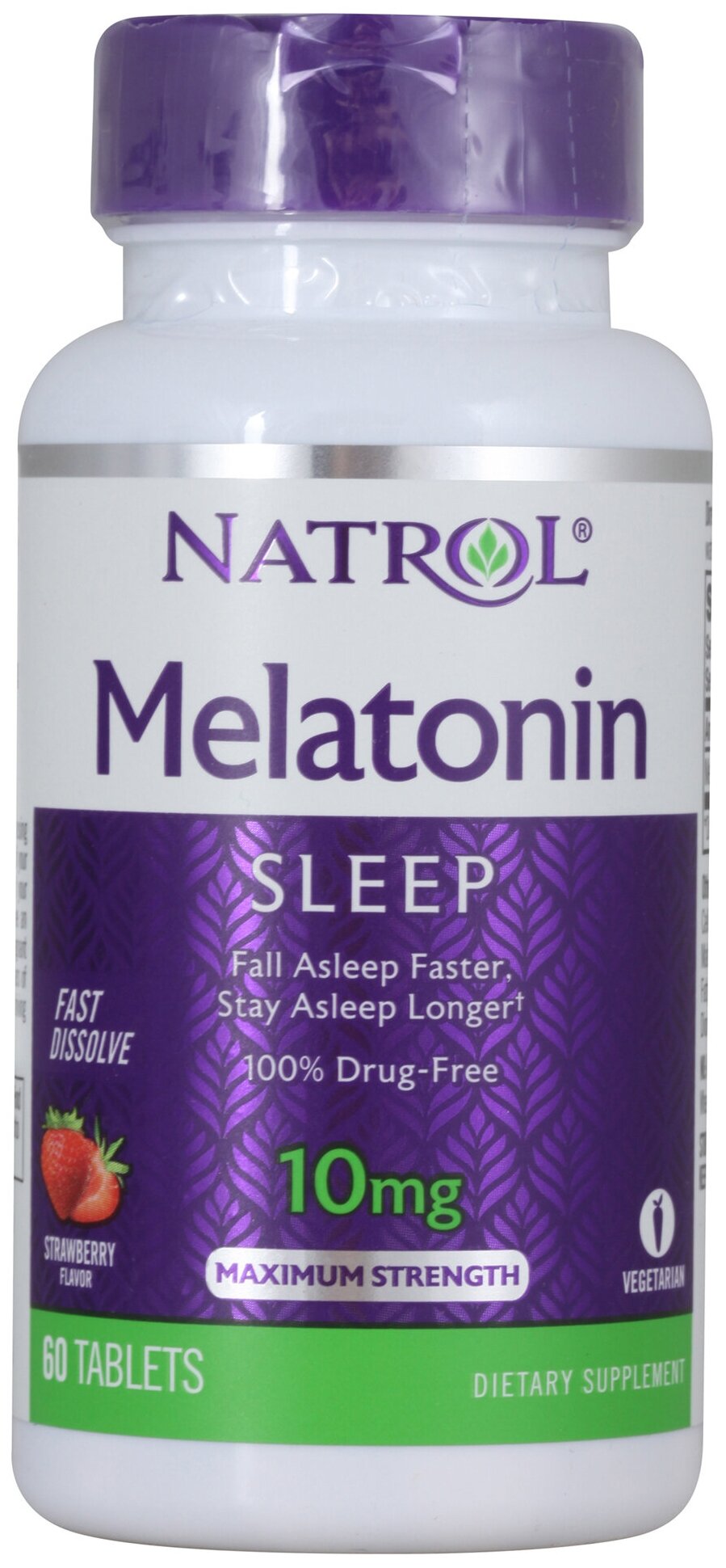 Natrol Melatonin 10mg F/D 60 tabs/ Быстрорастворимые таблетки мелатонина клубника- 10 мг 60 табл