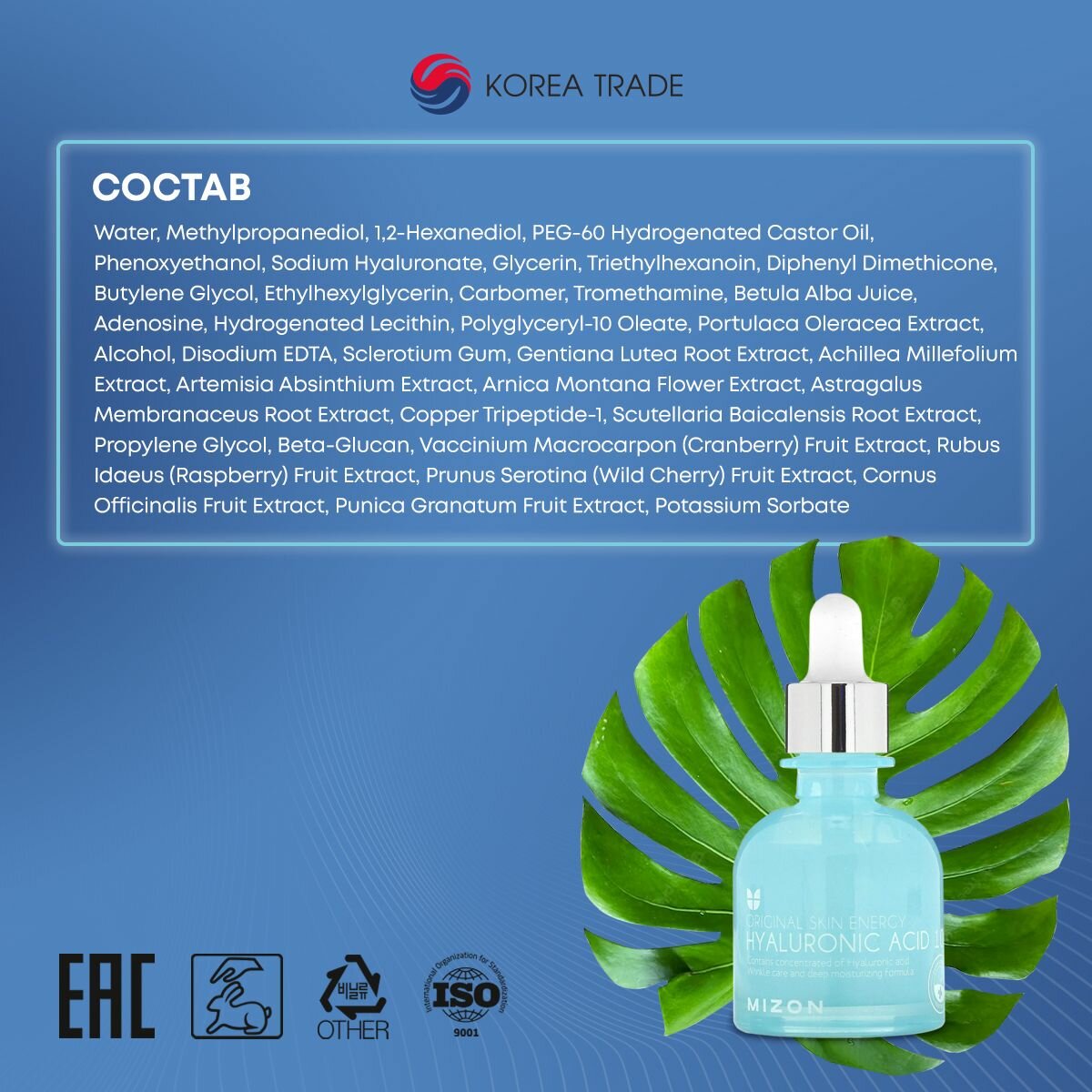 Mizon Original Skin Energy Hyaluronic Acid 100 Гиалуроновая сыворотка для лица, 30 мл