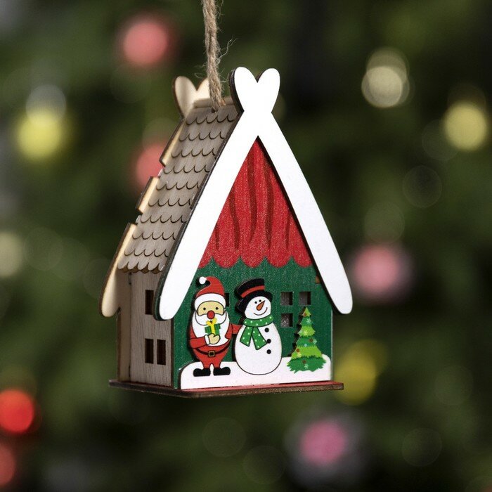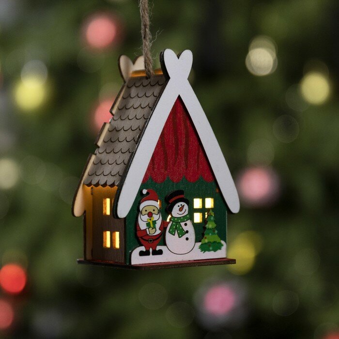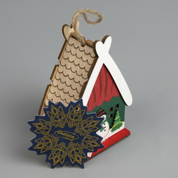 Купить Ёлочная игрушка «Домик со снеговиком», от батареек, свечение тёплое белое