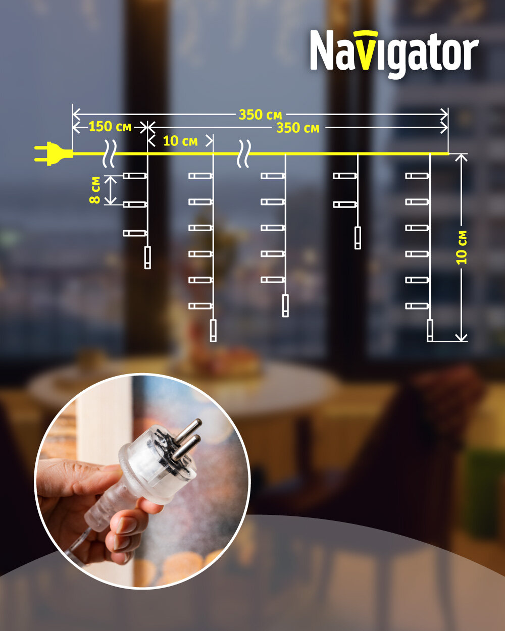 Гирлянда Navigator бахрома NGF-I02-100, 3.5 х 0.5 х 0.2 м, 0.2 х 0.5 м, 100 ламп, теплый белый/прозрачный провод