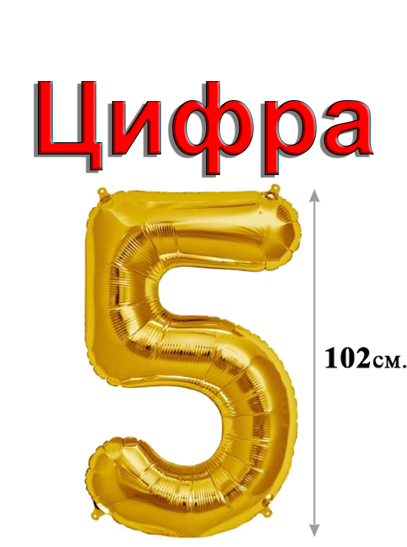 Фольгированный шар "Цифра 5", цвет золото / Gold, размер 102 см. интересное: