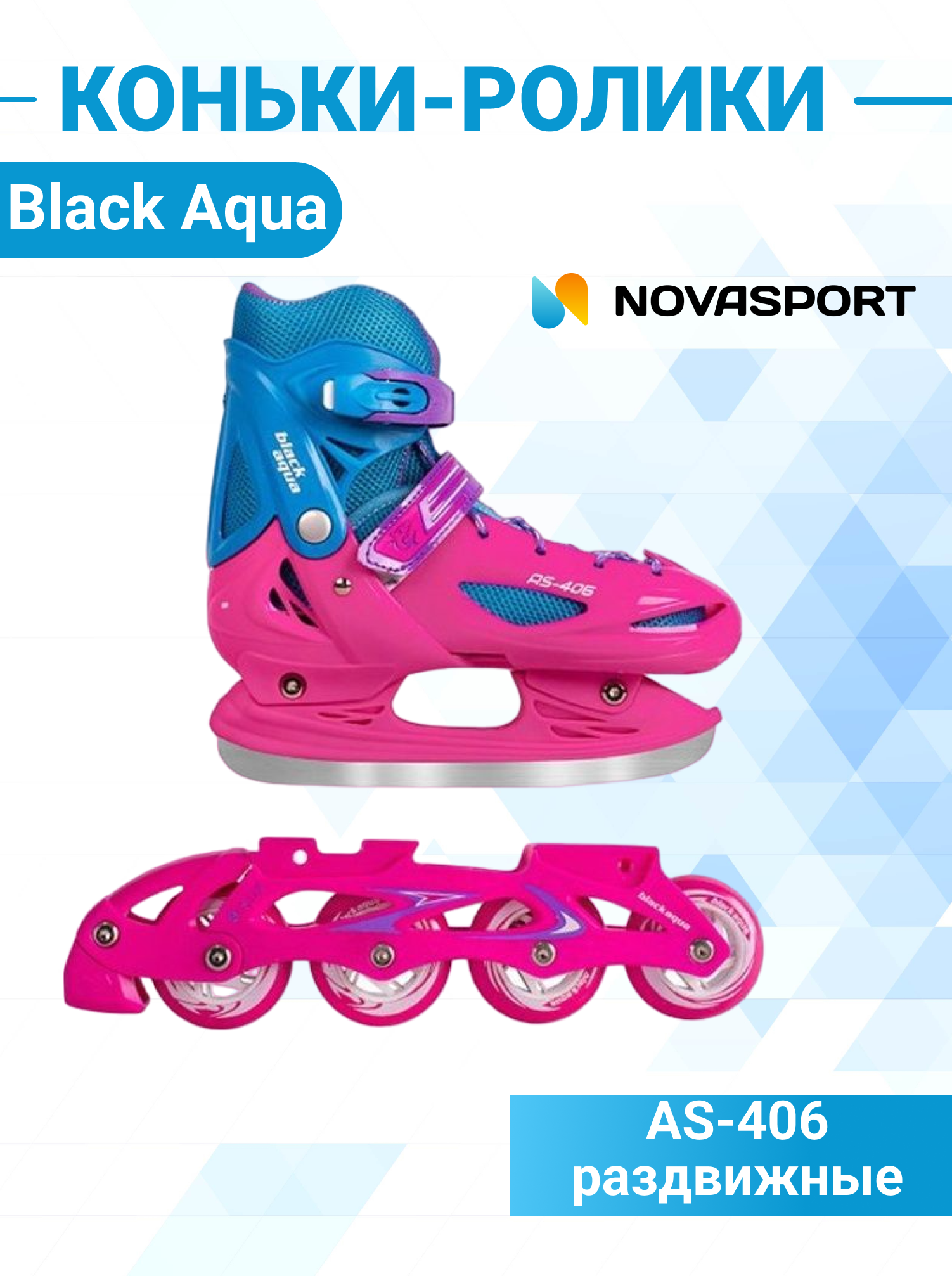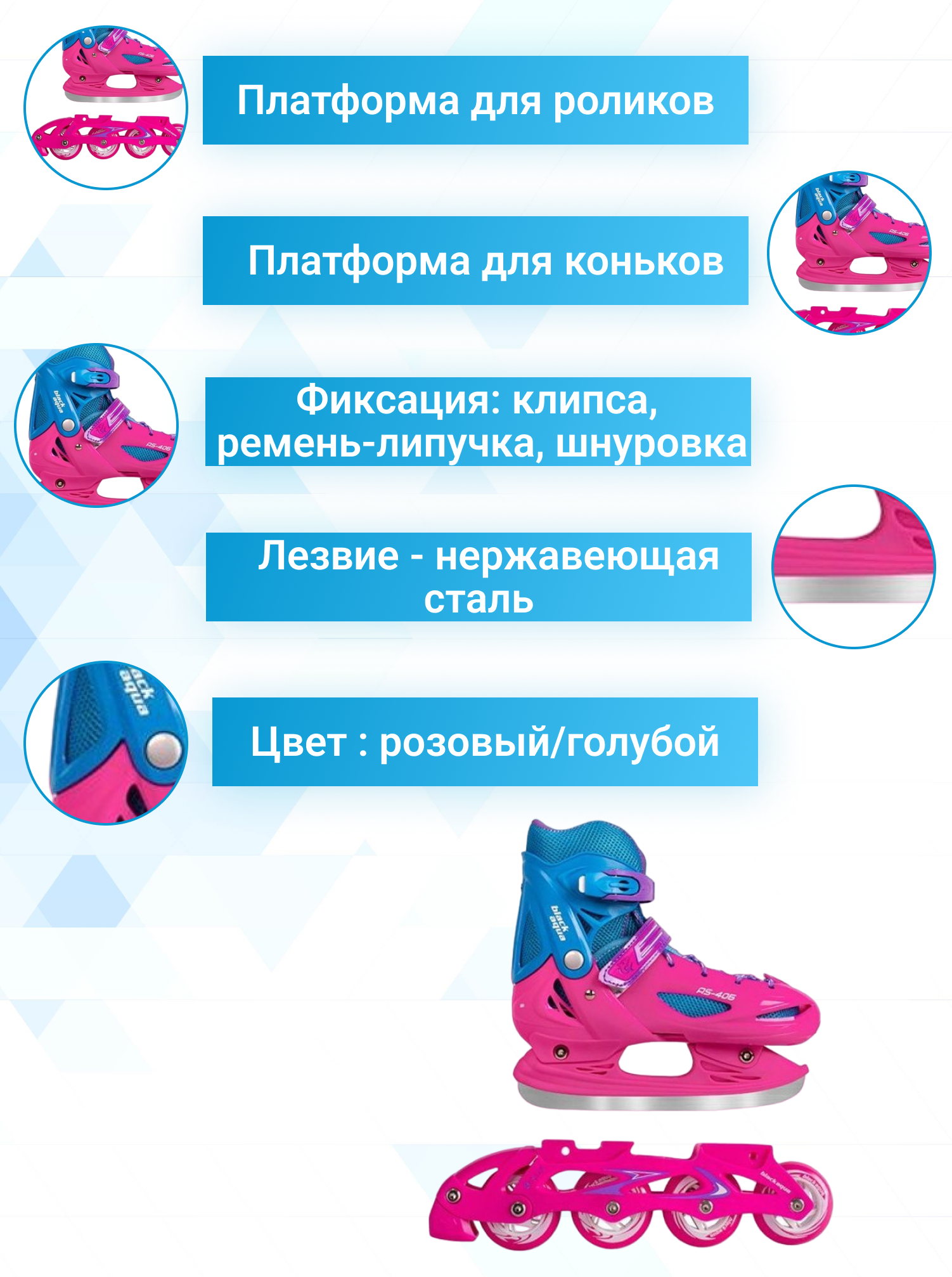 Коньки + ролики, коньки детские ледовые раздвижные с роликовой платформой BlackAqua AS-406 мультиколор размер 30-33