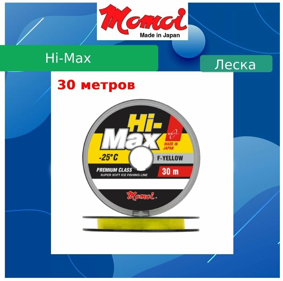 Монофильная леска Momoi Hi-Max d=0.18 мм, 30 м, 3.5 кг, sky blue, 1 шт.