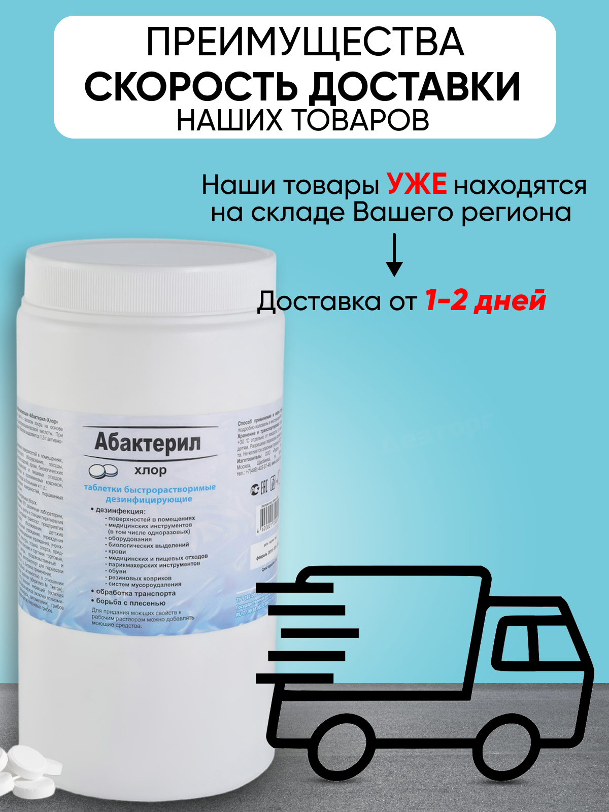 1 шт. Дезинфицирующее средство с вирулицидной активностью ГОСТ 12.1.007-76 Абактерил-Хлор таблетки 300 шт 1 кг.,