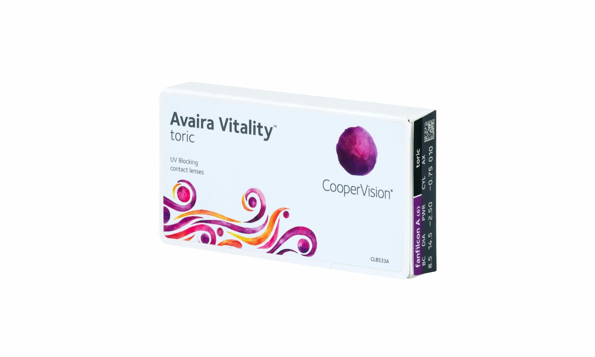 Астигматические линзы CooperVision Avaira Vitality toric (6 линз) Ось 170, Оптическая сила цилиндра -0.75 -8.00 R 8.5, двухнедельные, прозрачные