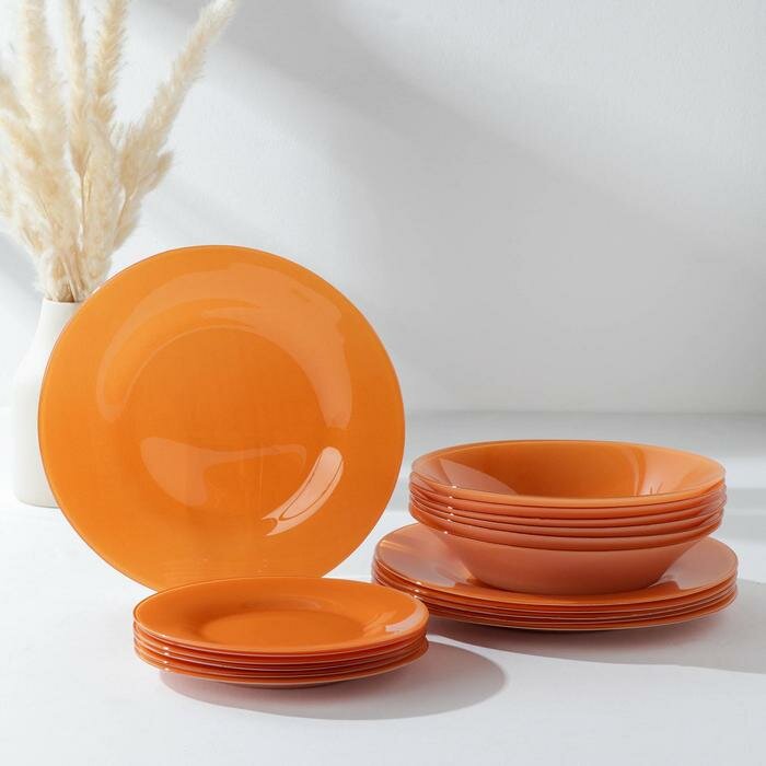 Купить Paşabahçe Столовый сервиз стеклянный «Уоркшоп Оранж Виладж», 18 предметов, цвет оранжевый