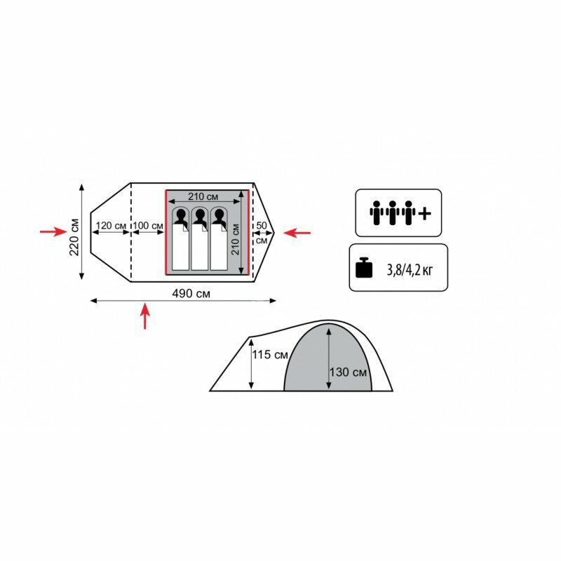 | Габариты внешней палатки(ДxШxВ) | 490x220x130 cм |