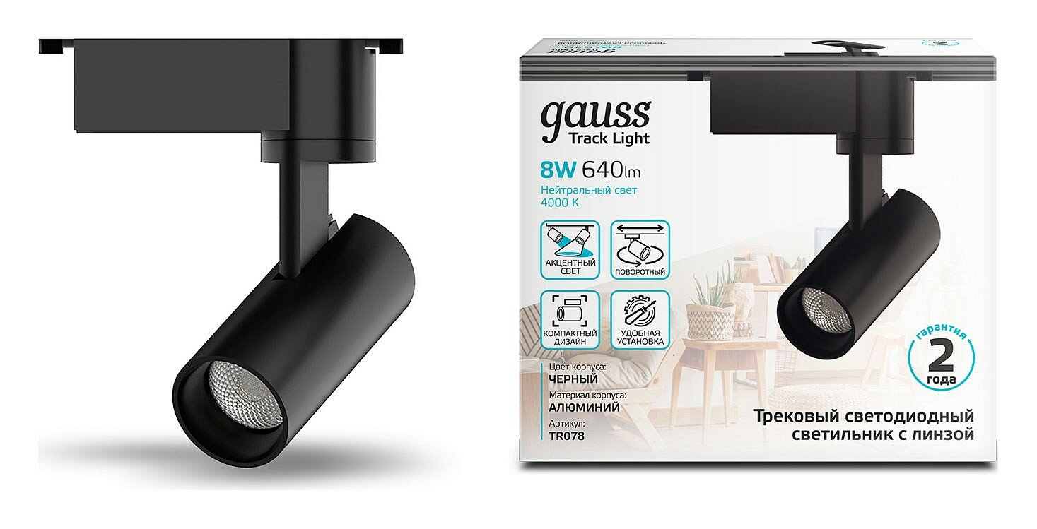 Трековая система GAUSS TR078, 8Вт, 4000К, белый нейтральный, черный
