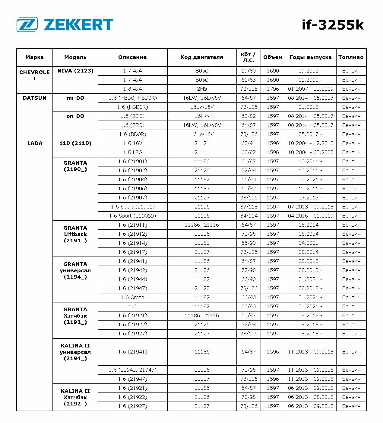 Купить IF3255K ZEKKERT Фильтр салон. угольн. Chevrolet Niva (2123) 02- Lada 110 04- Niva 00- Kalina I II 04- Granta 11