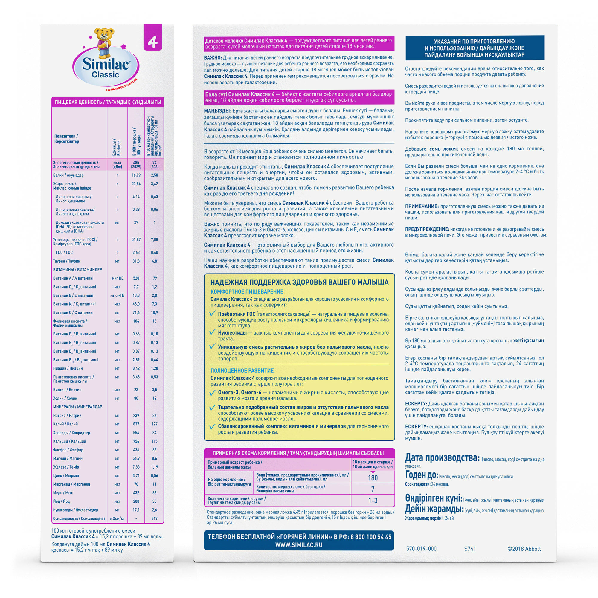 Симилак Классик 4 - детское молочко, 18 мес., к.п., 600