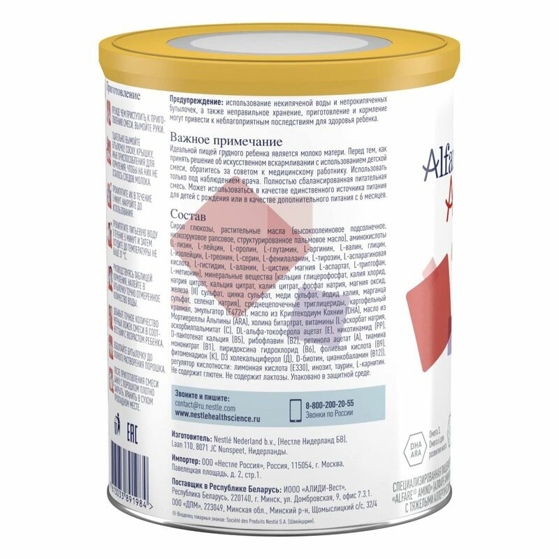 Смесь NESTLE Alfare Allergy, лечебно-профилактическая, с 0 месяцев, 400г