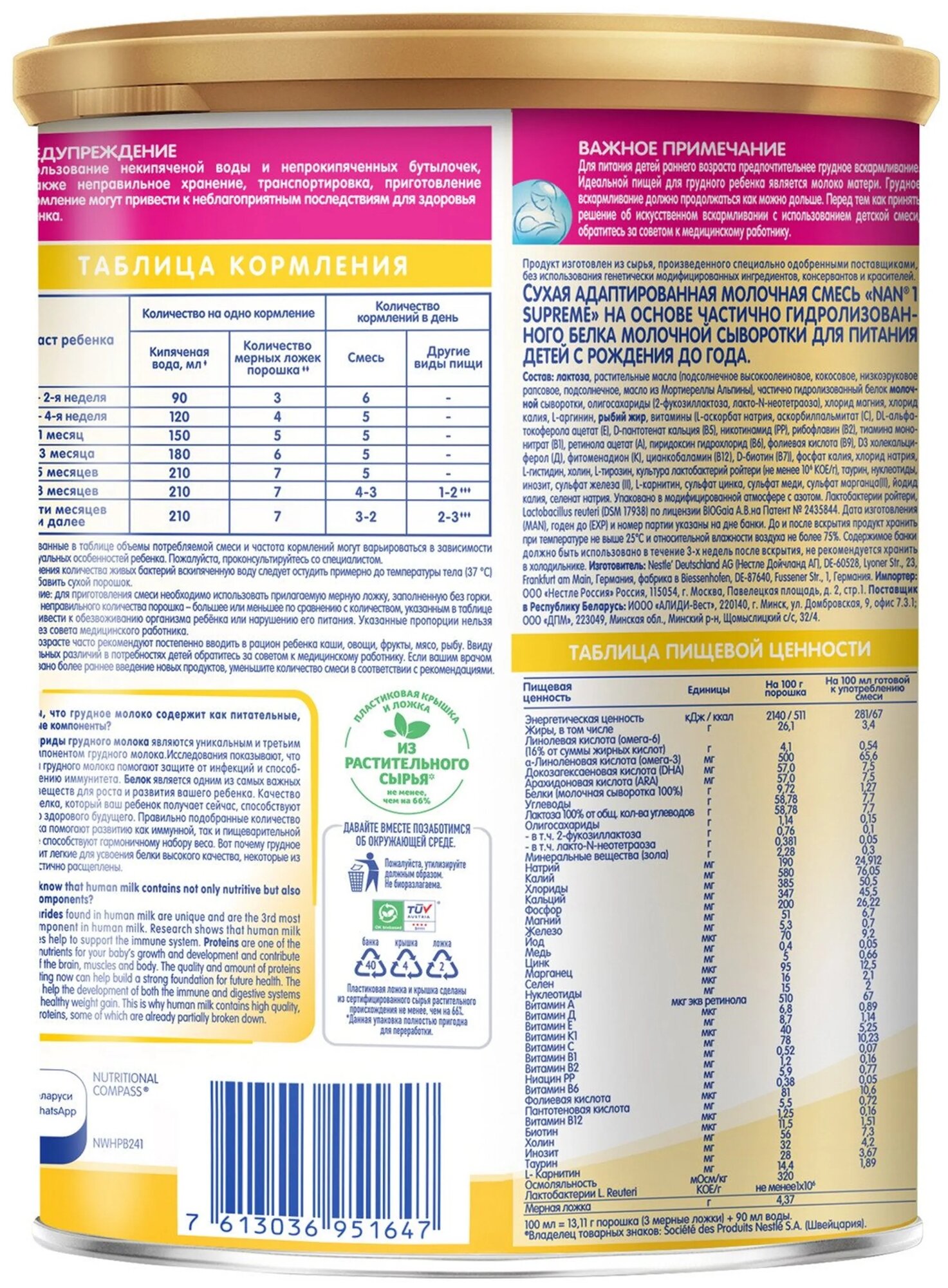 | Минусы: | разная информация о количестве кормлений на разных банках |