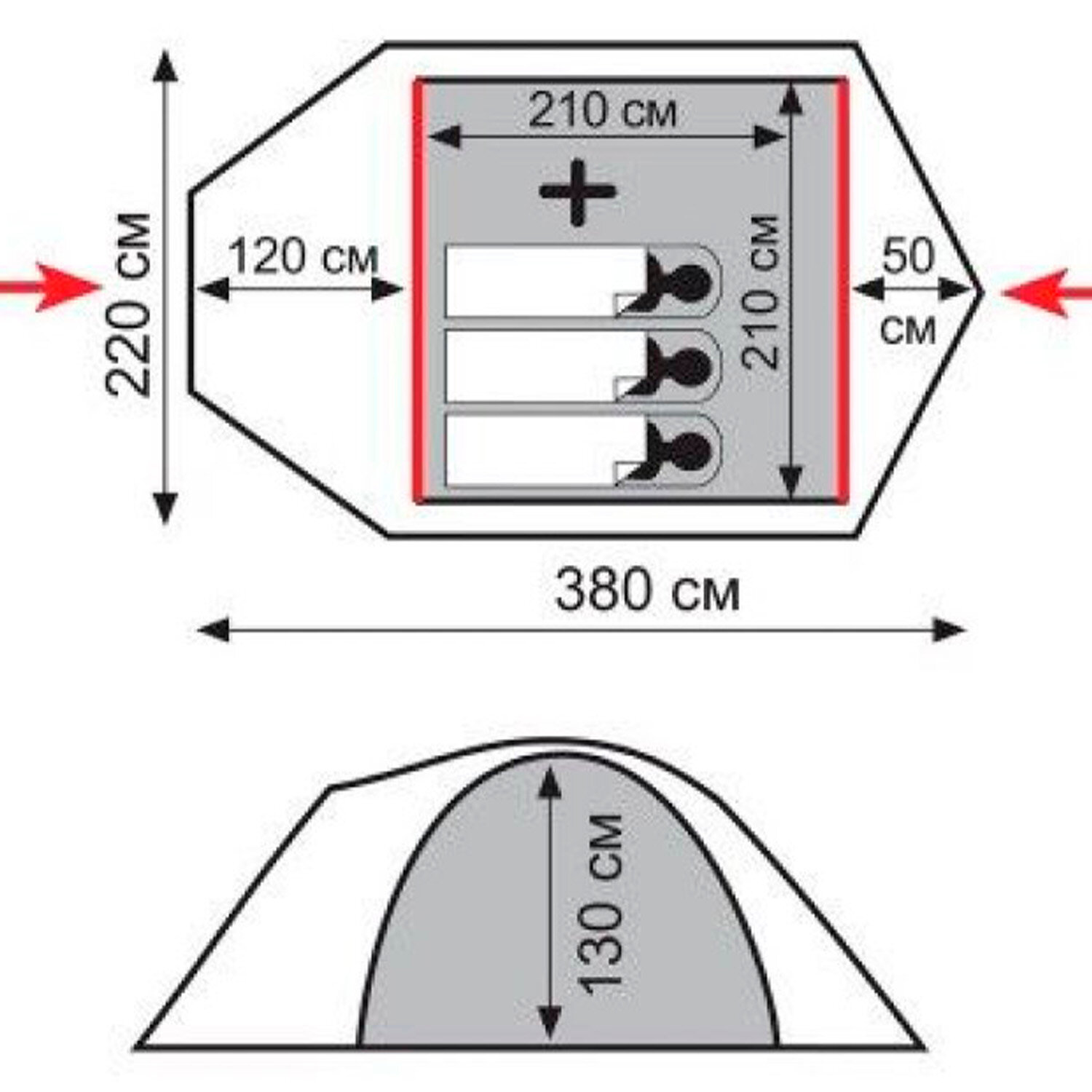 | Ширина внутренней палатки | 210 см |