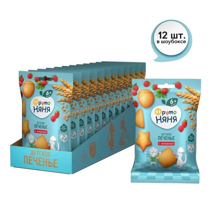 Печенье ФрутоНяня пшеничное земляника, десерт детский с 6 месяцев 50 г * 12 шт интересное: