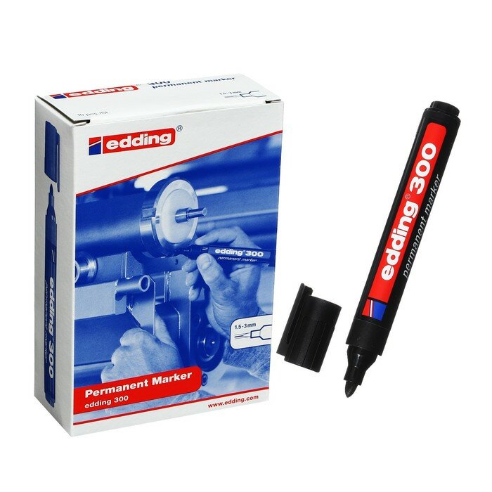 Маркер перманентный (нестираемый) EDDING 300, 1,5-3 мм, круглый наконечник, черный, E-300/1