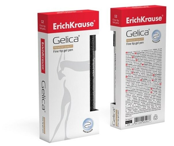 Ручка гелевая ErichKrause Gelica, чернила чёрные, узел 0.5 мм, длина линии письма 500 метров