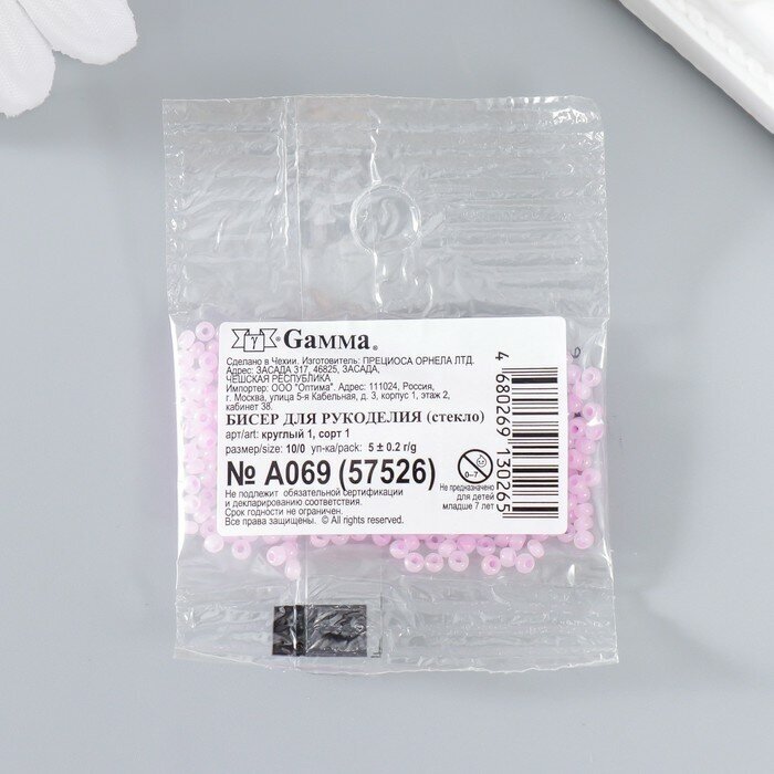 Бисер круглый Gamma 1, 10/0, 2,3 мм, 10 шт*5 г, 1-й сорт, A069 розовый меланж