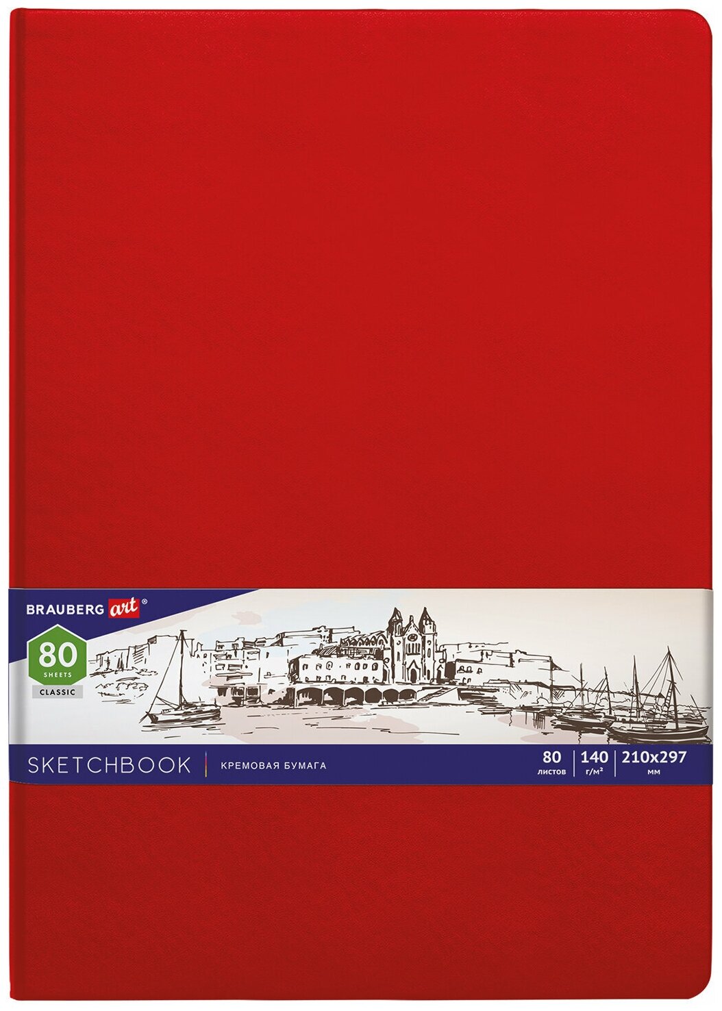 Скетчбук, слоновая кость 140г/м 210х297мм, 80л, кожзам, резинка, BRAUBERG ART_CL, красный, 113199