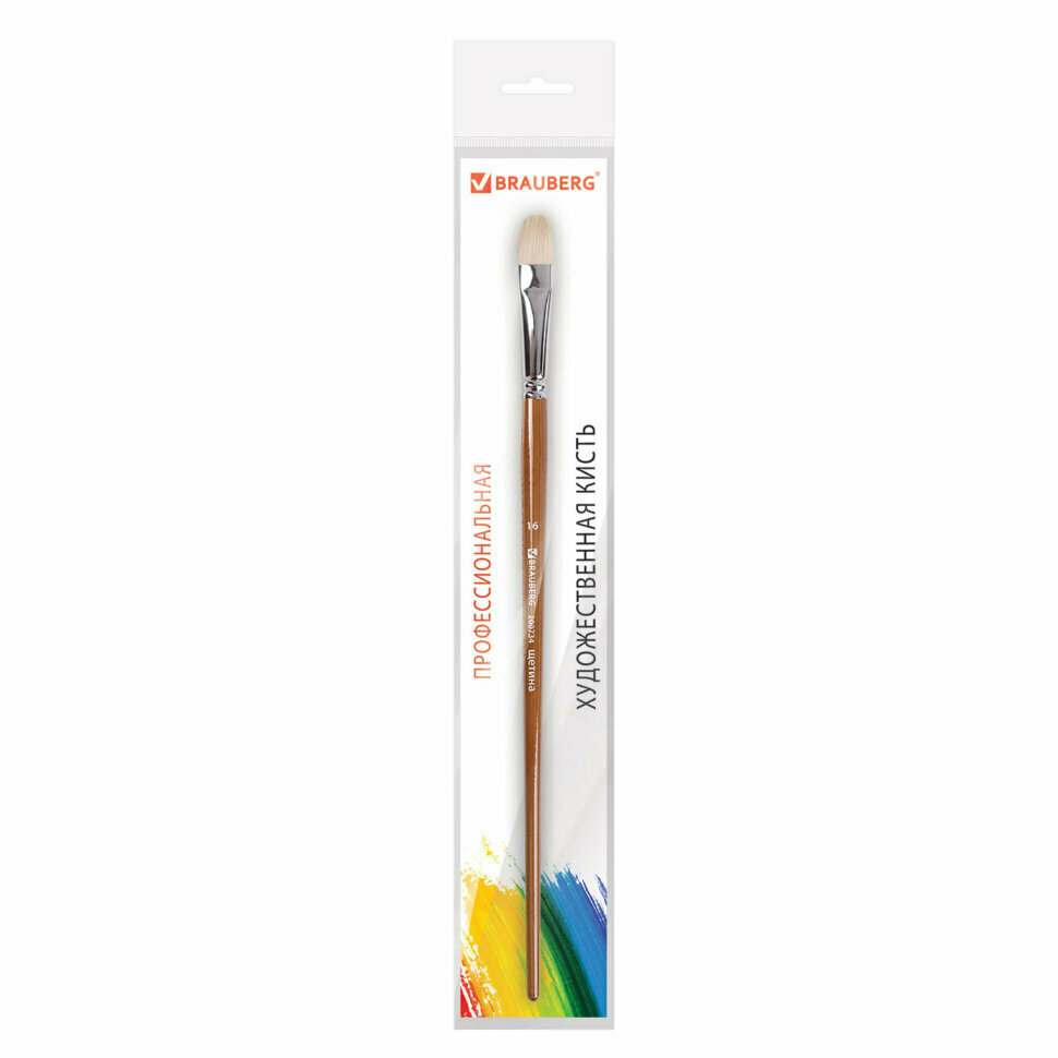 Кисть художественная профессиональная BRAUBERG ART CLASSIC, щетина, овальная, № 16, длинная ручка, 200734 В комплекте: 1шт.