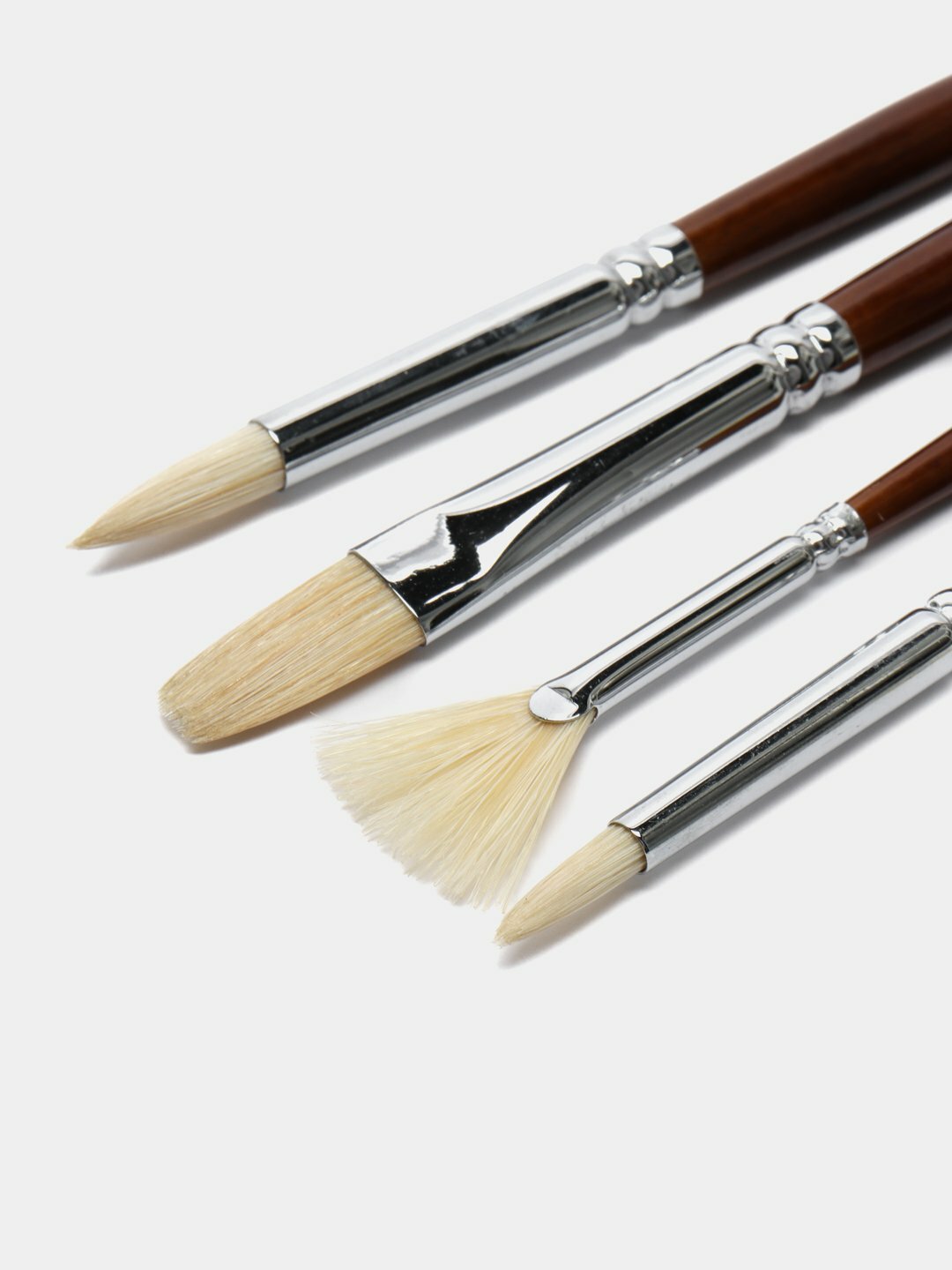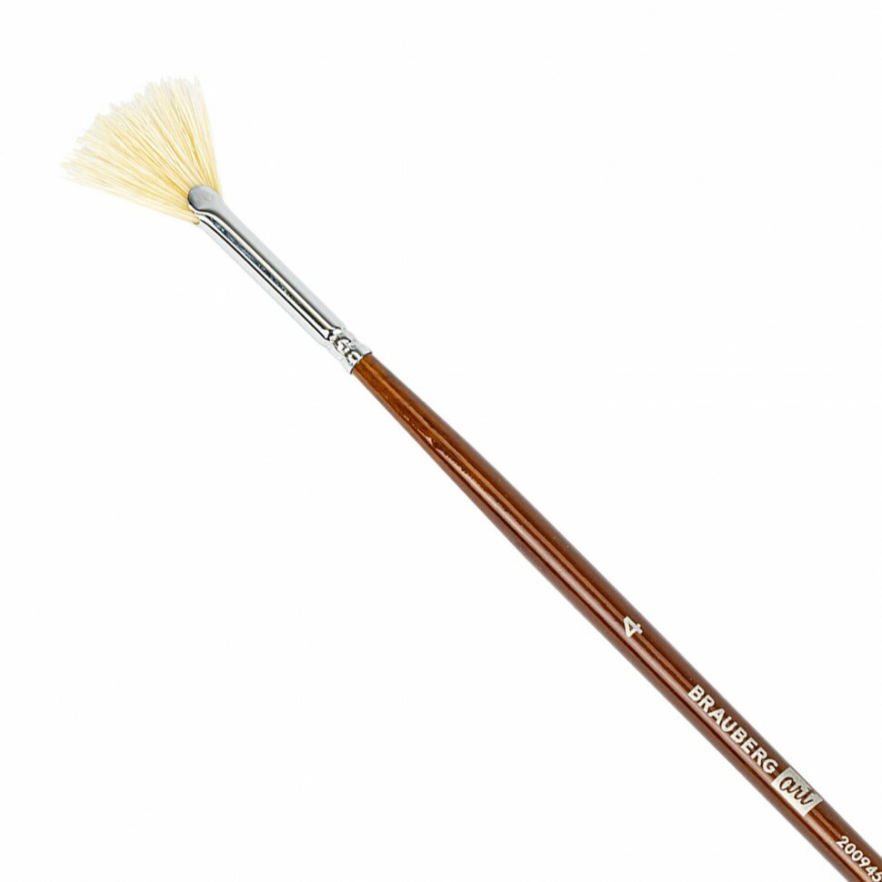 Кисти художественные BRAUBERG ART, набор 4 шт (щетина круглая №4,6, плоская №10, веерная №4), 200945
