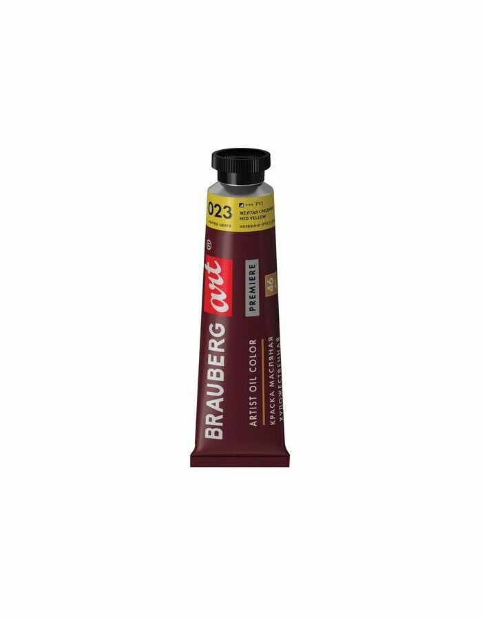 Краска масляная художественная Brauberg ART PREMIERE, 46 мл, проф. серия, желтая средняя, 191400