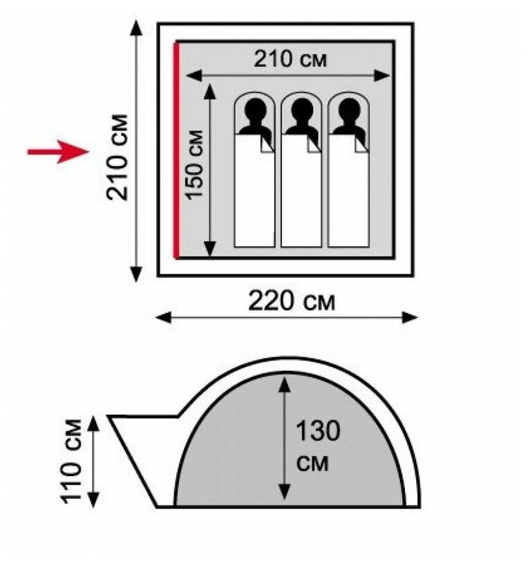 | Минусы: | Очень душно, вентиляция слабовата. Также палатка просвечивает, с утра в ней очень светло, а хочется большего поглощения солнца |