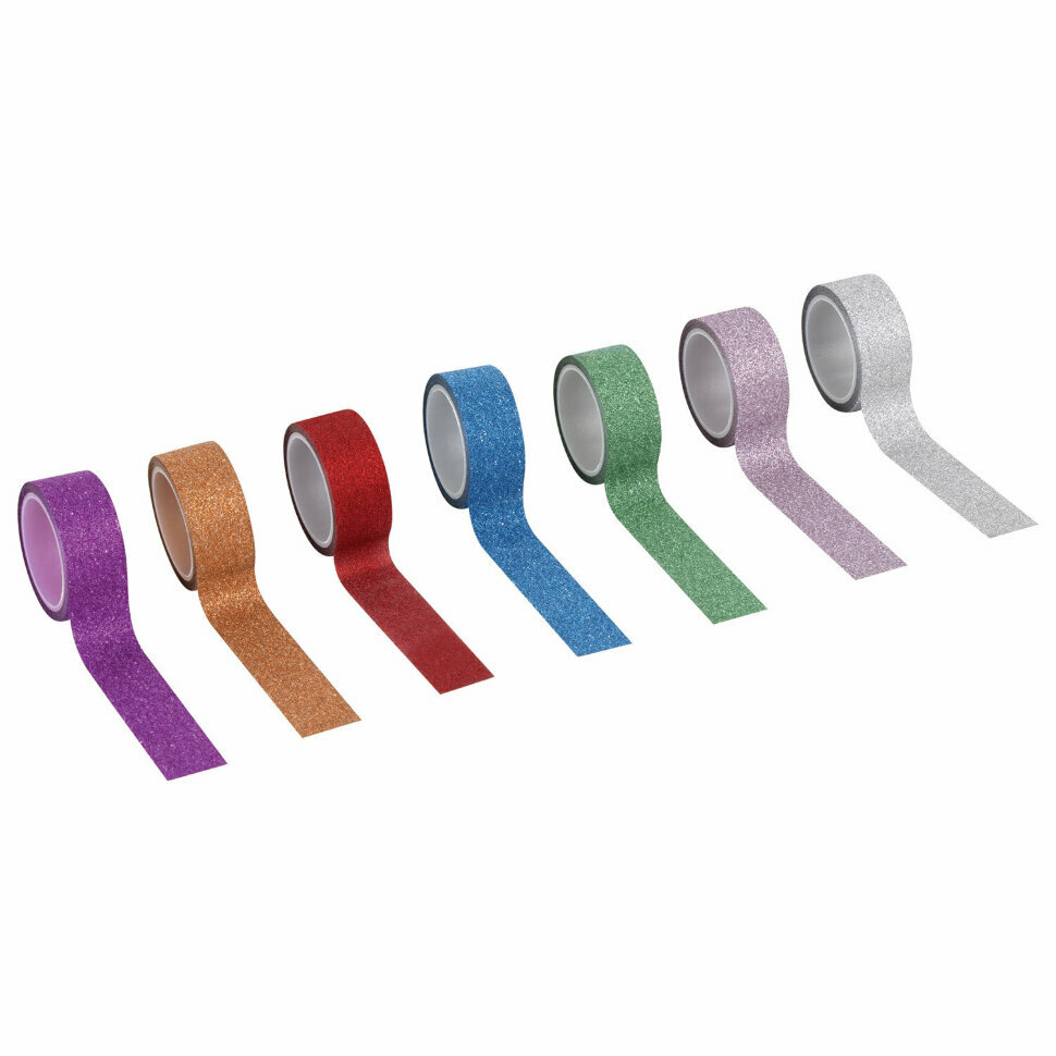 Клейкие ленты полимерные для скрапбукинга и декора с блестками, интенсив, 15 мм * 3 м, 7 цветов, комплект, остров сокровищ, 661715, 1 шт