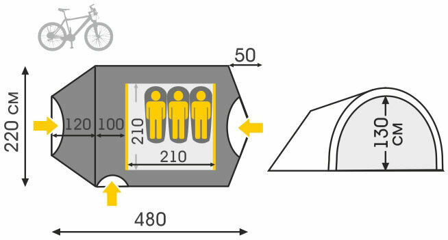 | Длина внешней палатки | 480 см |