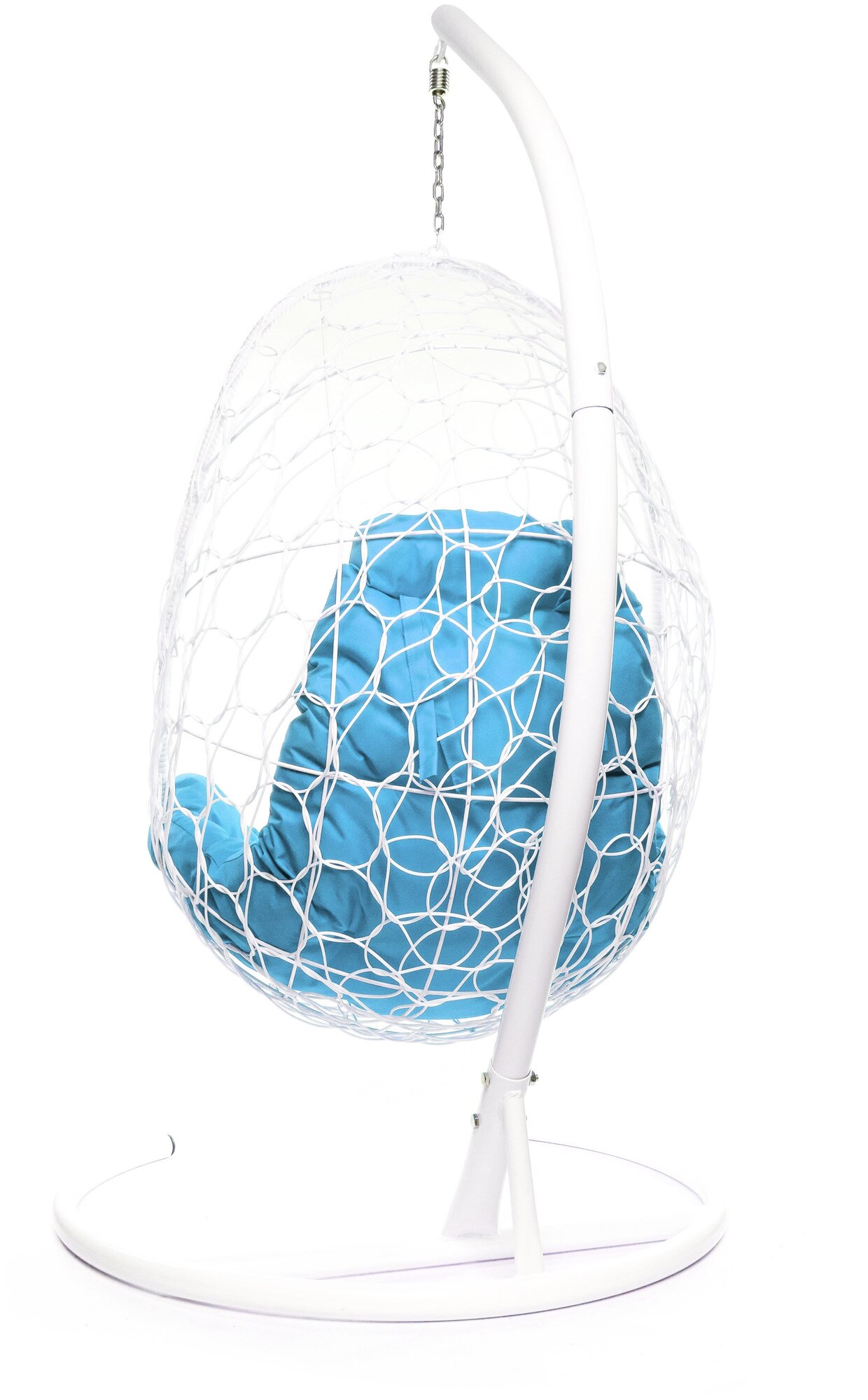 Подвесное кресло с ротангом "Овал" белое с голубой подушкой 830х700х1190 M-Group