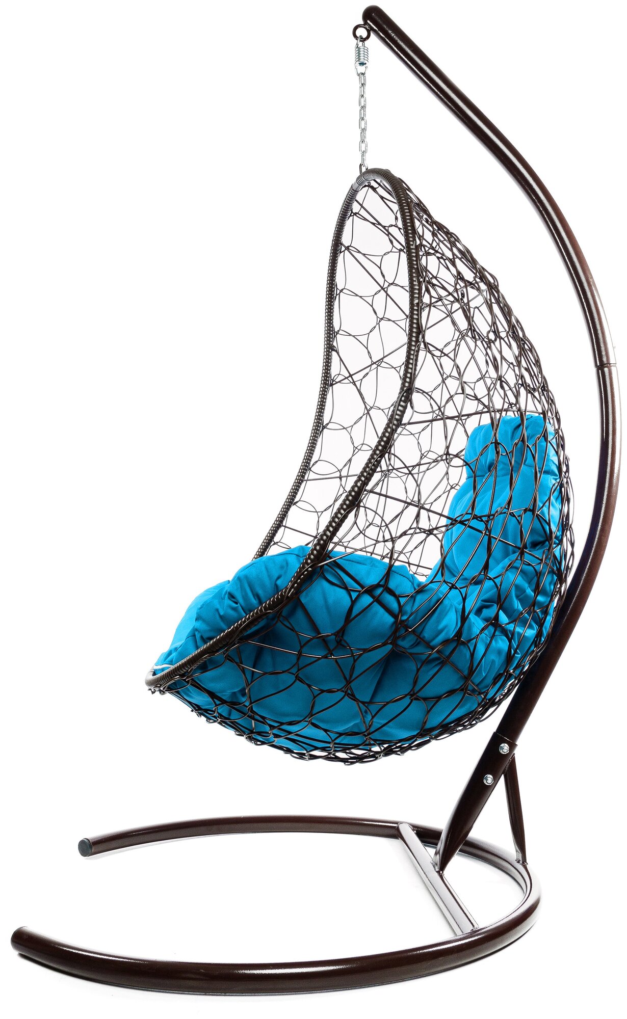 Подвесное кресло M-Group "Овал" с ротангом Коричневый/ подушка Голубая