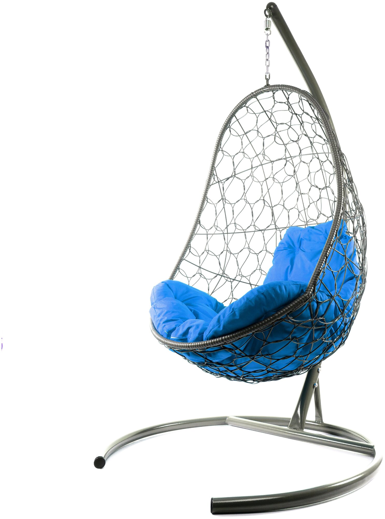 Подвесное кресло M-group овал с ротангом серое синяя подушка