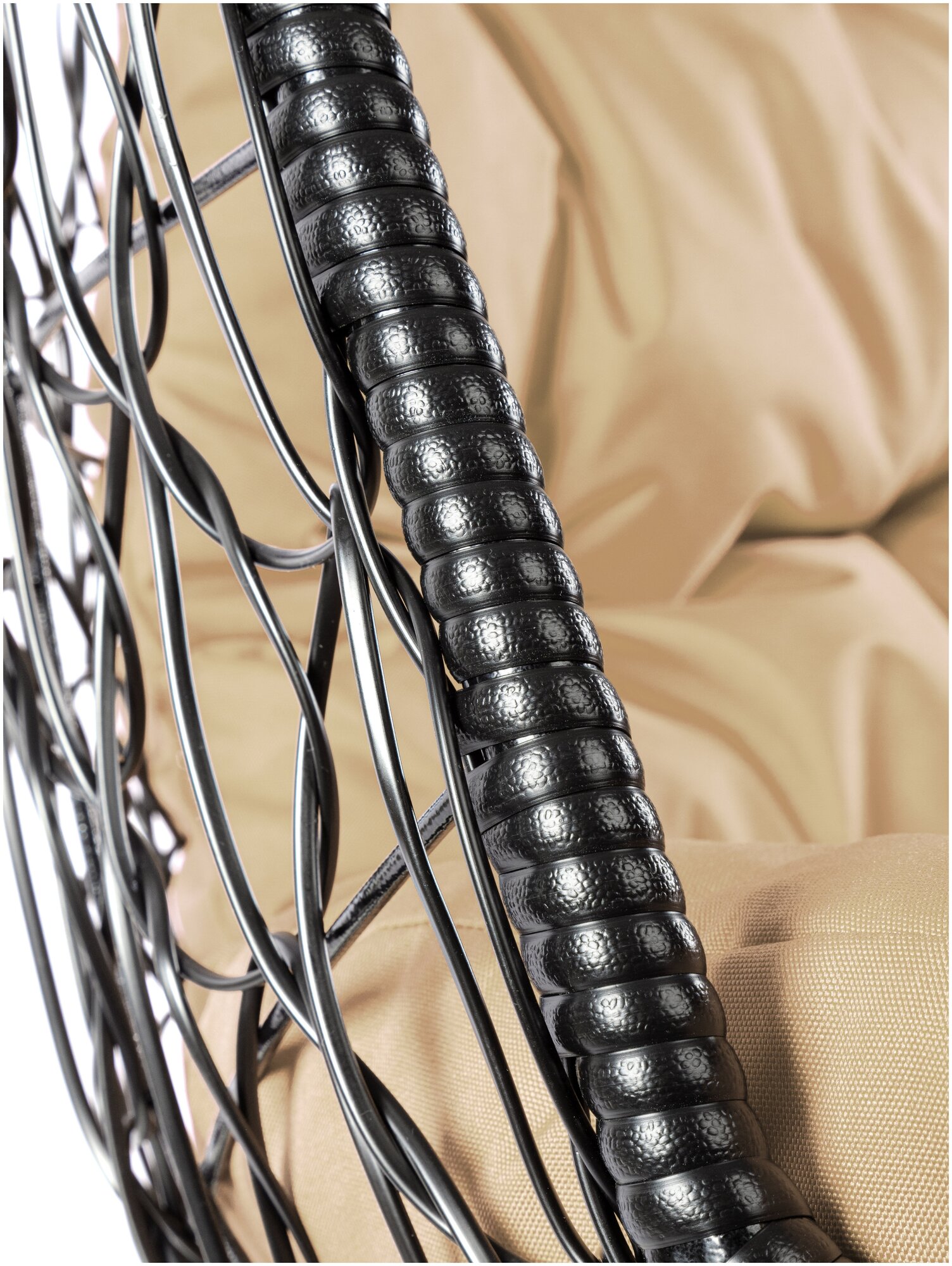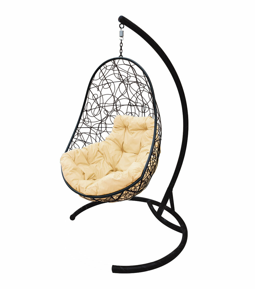 Купить Подвесное кресло овал с ротангом чёрное, бежевая подушка