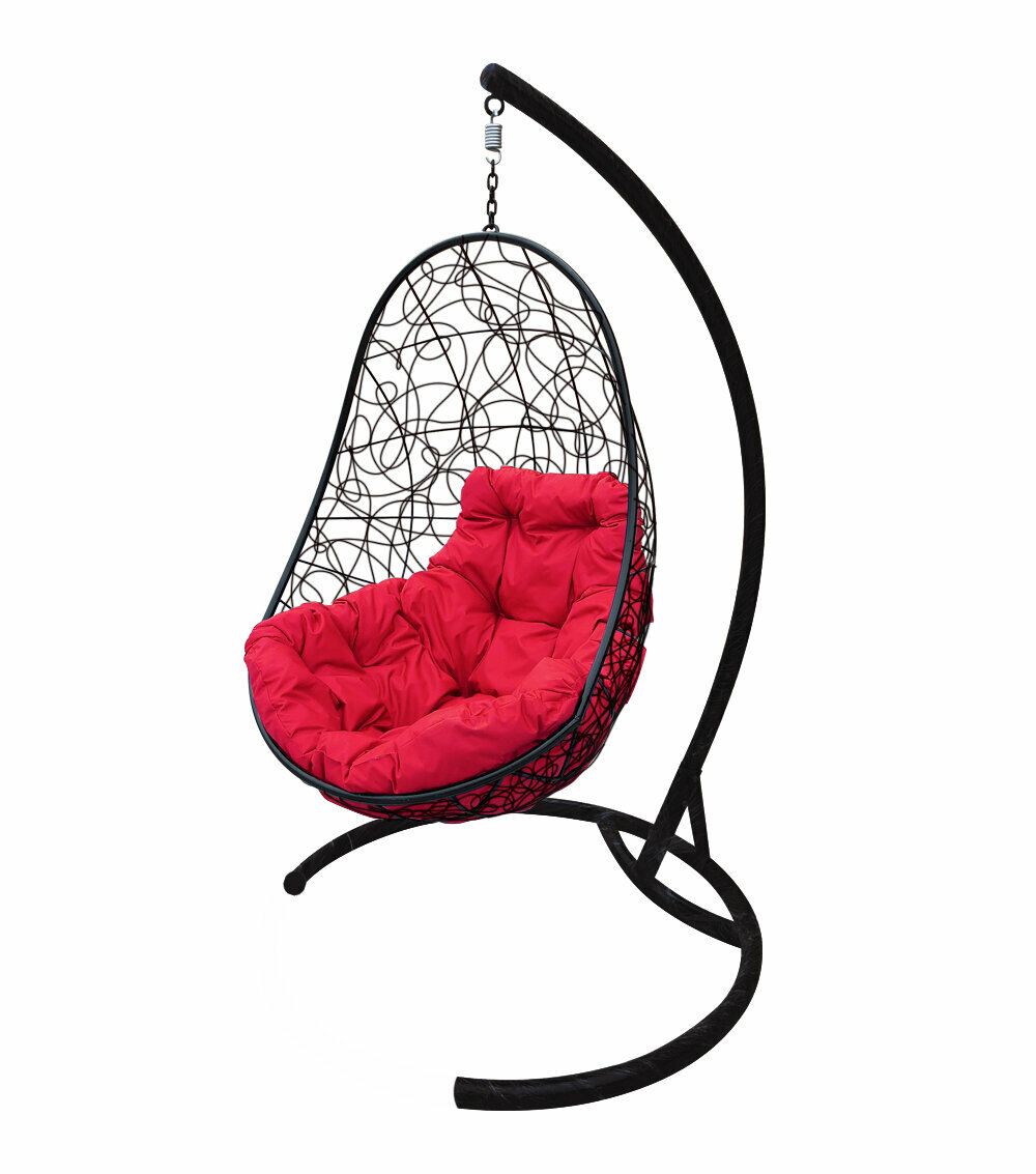 СохранитьПодвесное кресло овал с ротангом чёрное, красная подушка интересное: